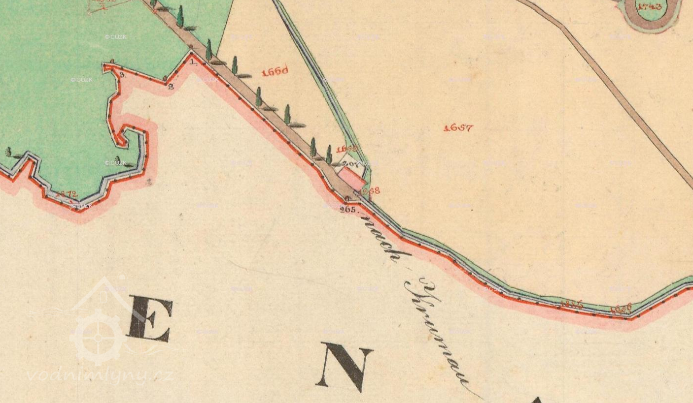 Císařský povinný otisk, výřez, 1838, © viz archivnimapy.cuzk.cz