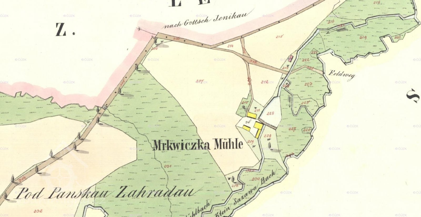 Mapa Pozemkového katastru, před 1945, © viz http://geoportal.gepro.cz/