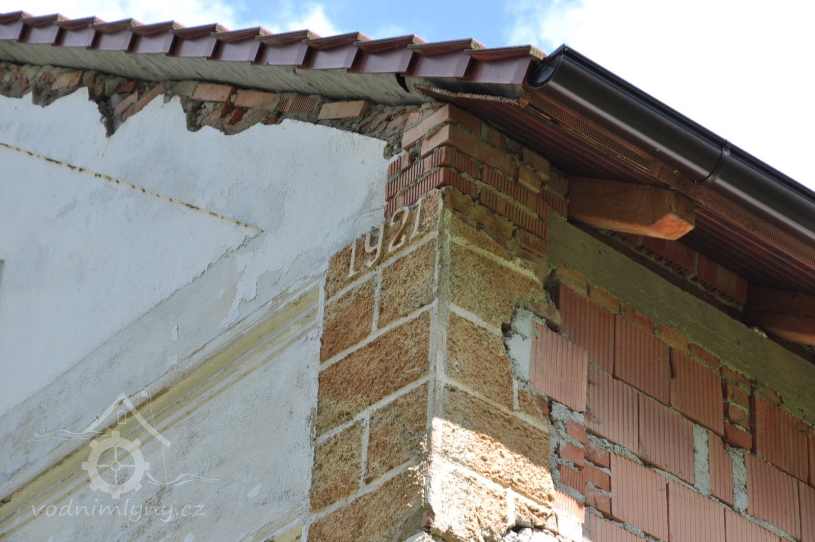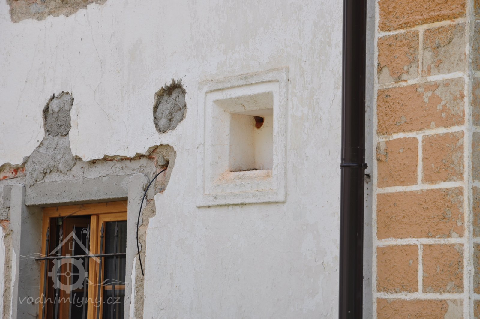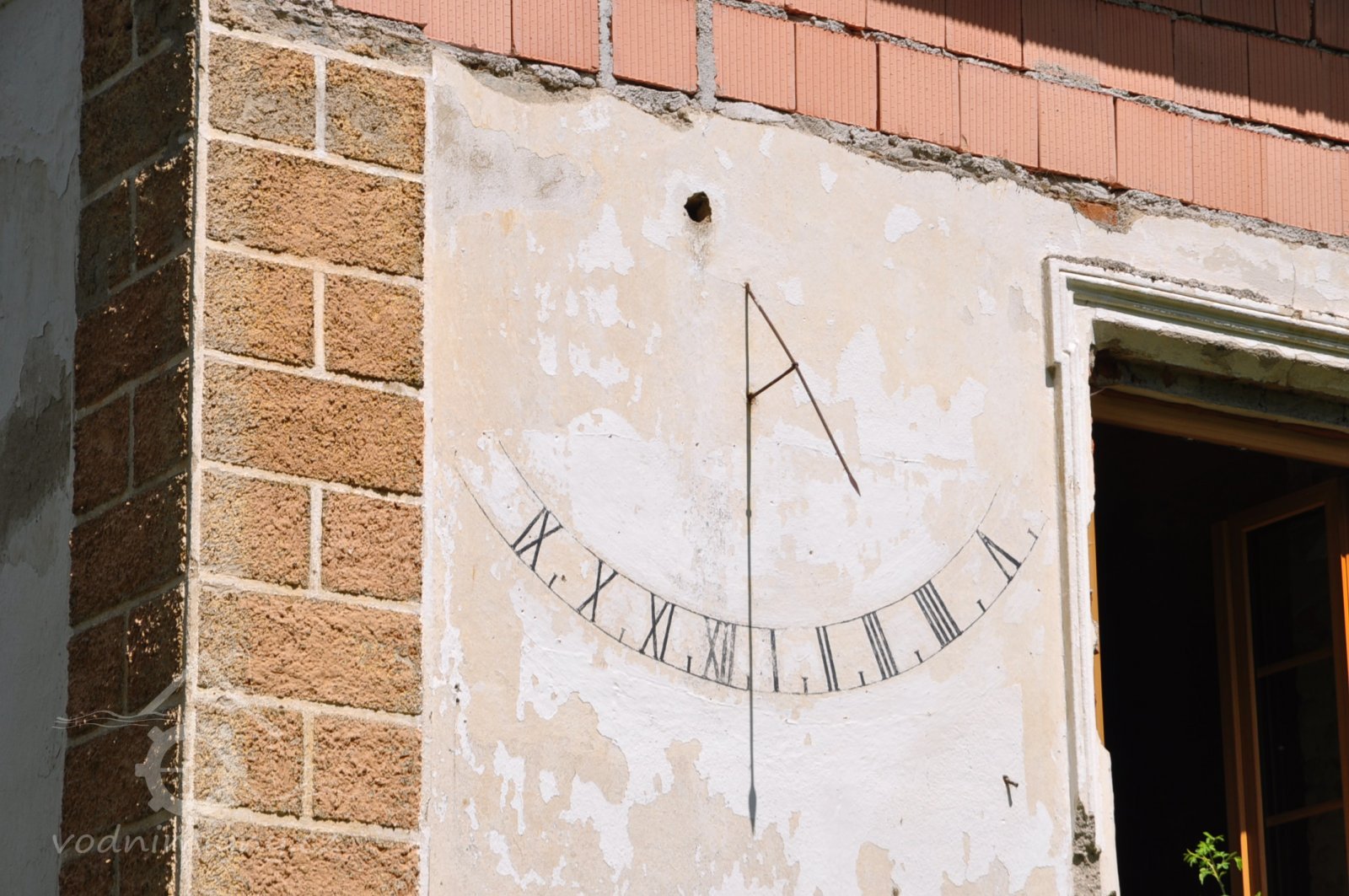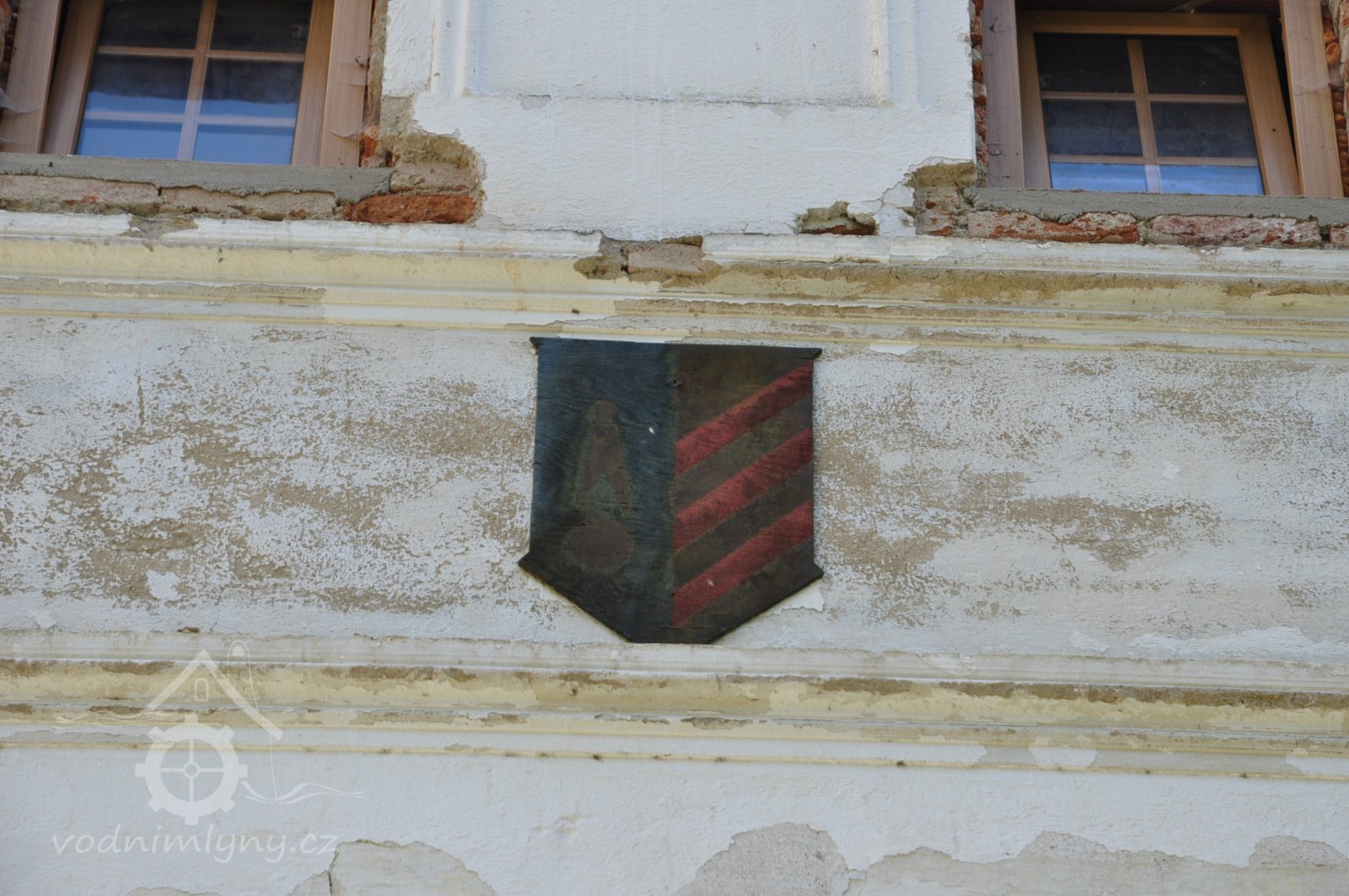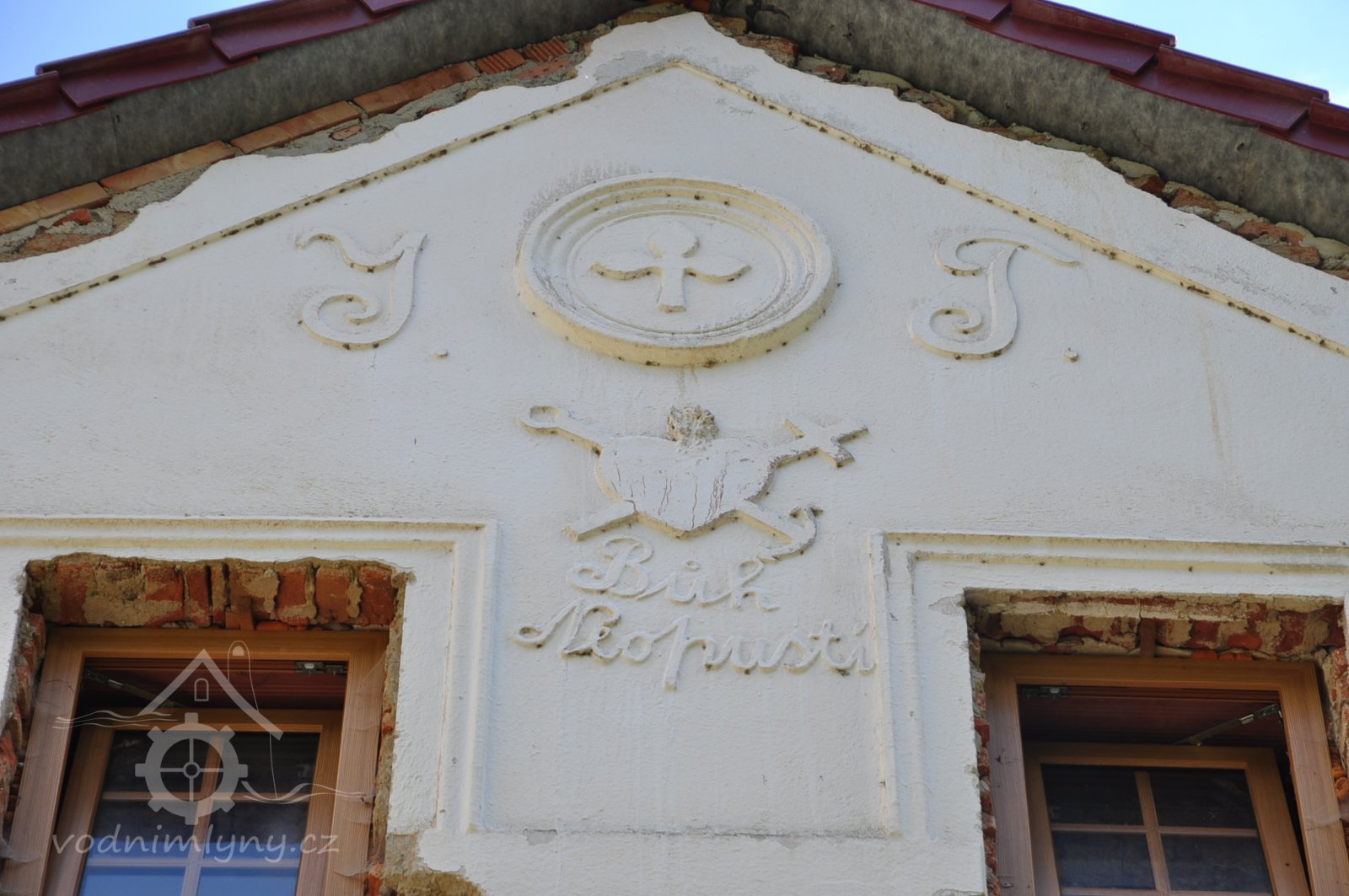 Štít mlýnice. Vlevo dole byla lednice s jedním kolem., 6.7.2016, © pepino