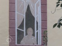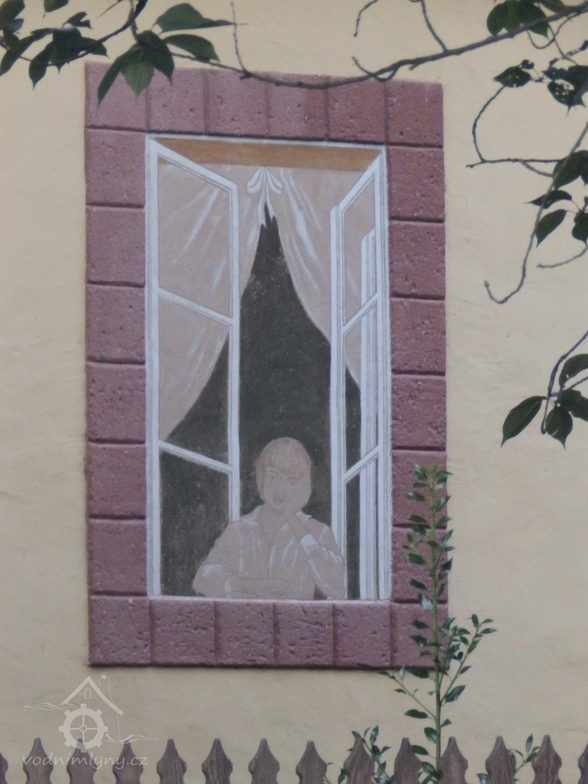 Falešné okno se sgrafitem znázorňujícím chlapeckou postavu., 2016, © doxa, (Prvky na obrázku: okno)