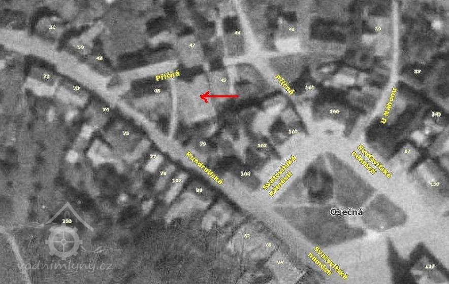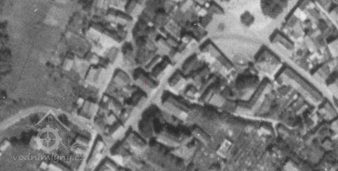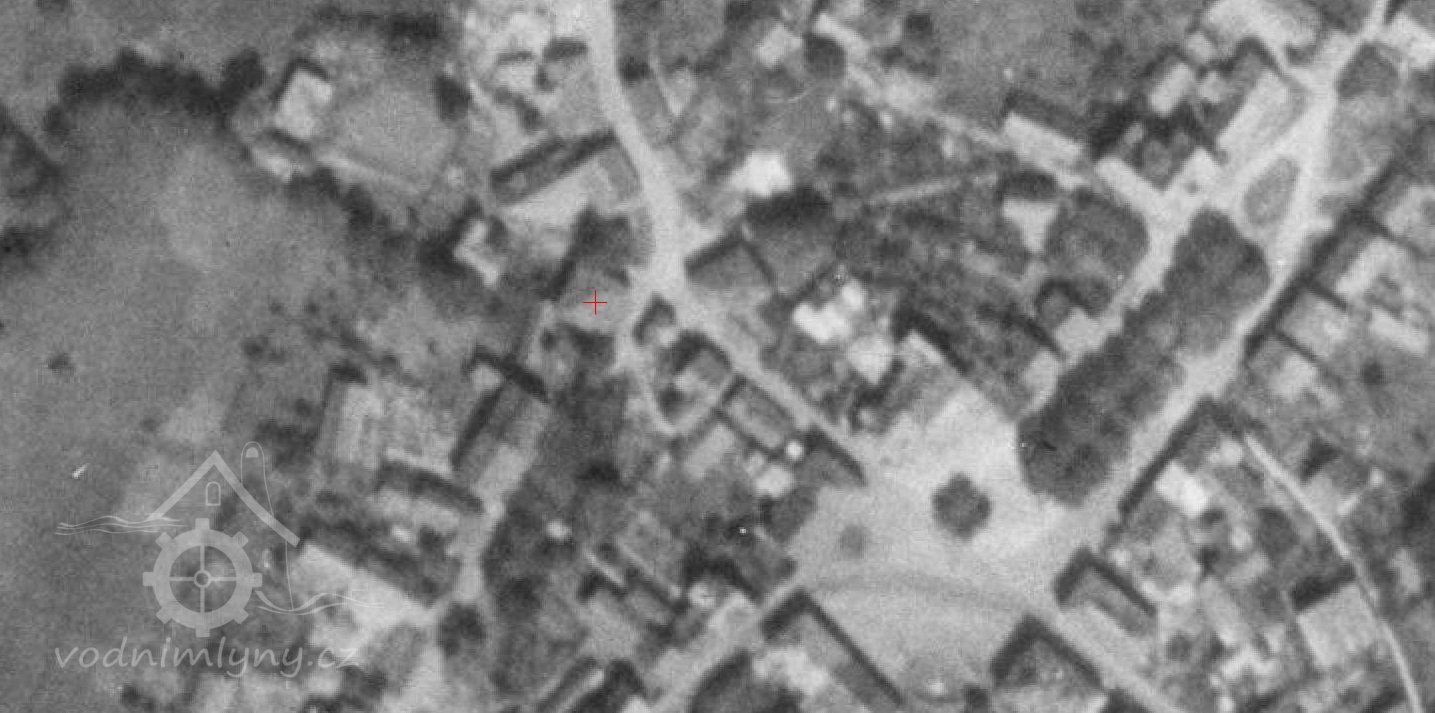 Letecké snímkování;objekt mlýna čp.46 v r.1953 ještě existoval, 1953, © kontaminace.cenia.cz