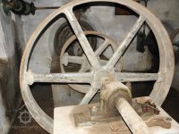 Transmise od turbíny, 2013, © doxa, (Prvky na obrázku: Turbína, transmise, řemenice, převody)