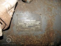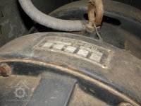Štítek od turbíny, 2013, © doxa, (Prvky na obrázku: značka výrobce na vodním motoru)