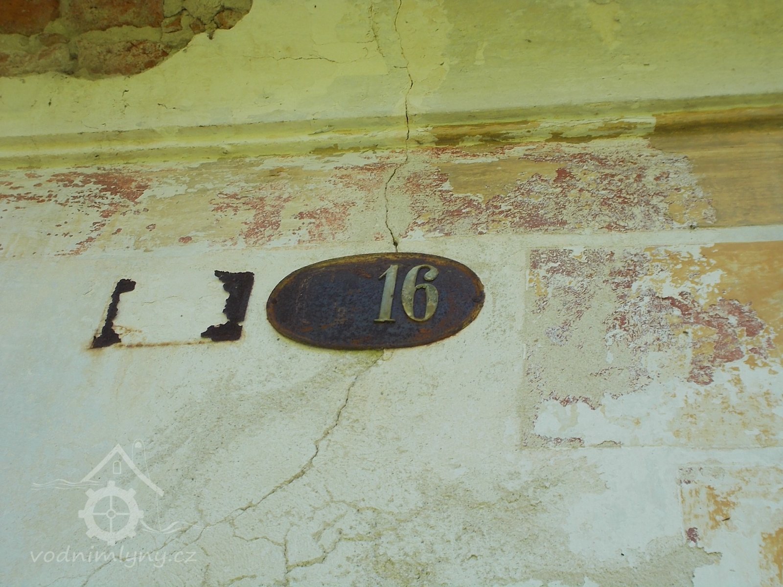 zřejmě zbytky cedulky pojišťovny a staré domovní číslo..., VIII./2016, © Kozel, (Prvky na obrázku: epigrafické památky (nápisy, datování aj.))