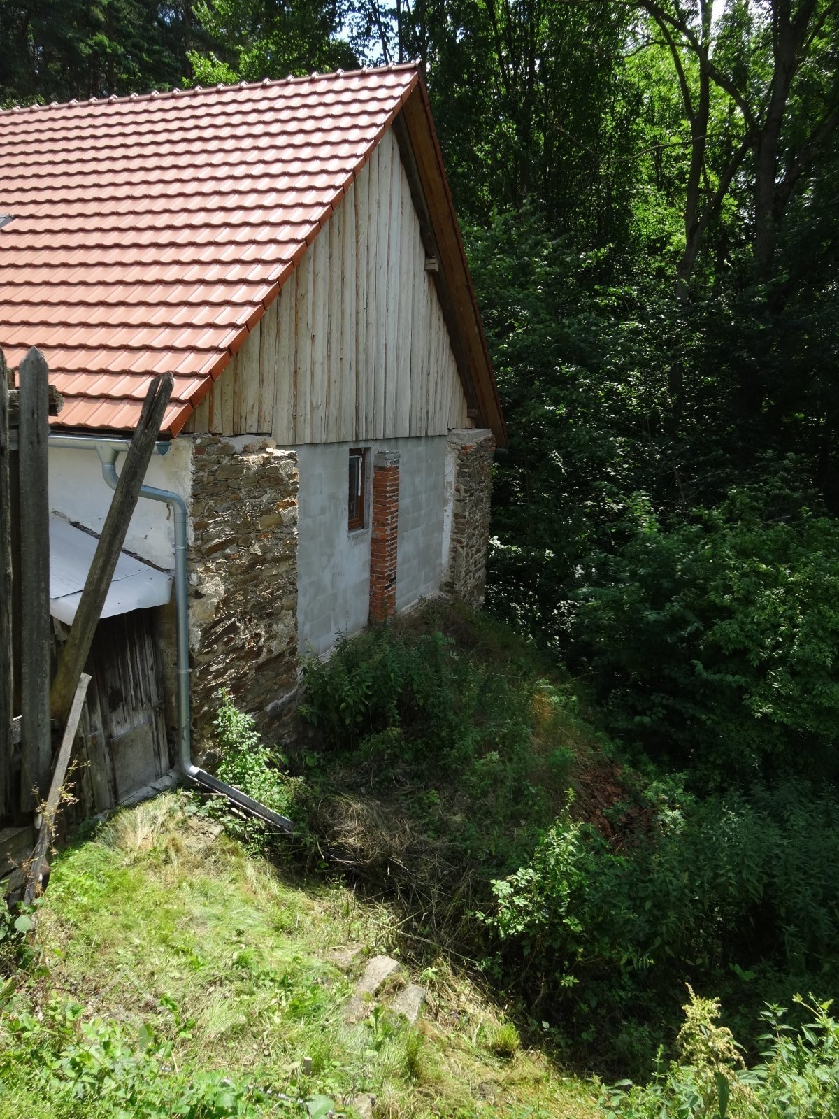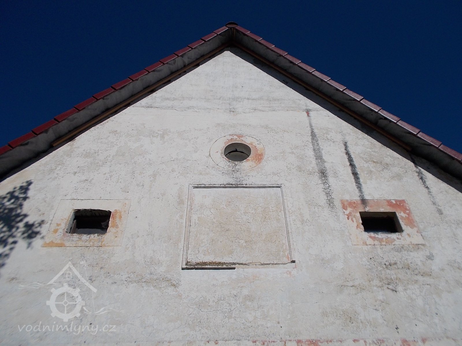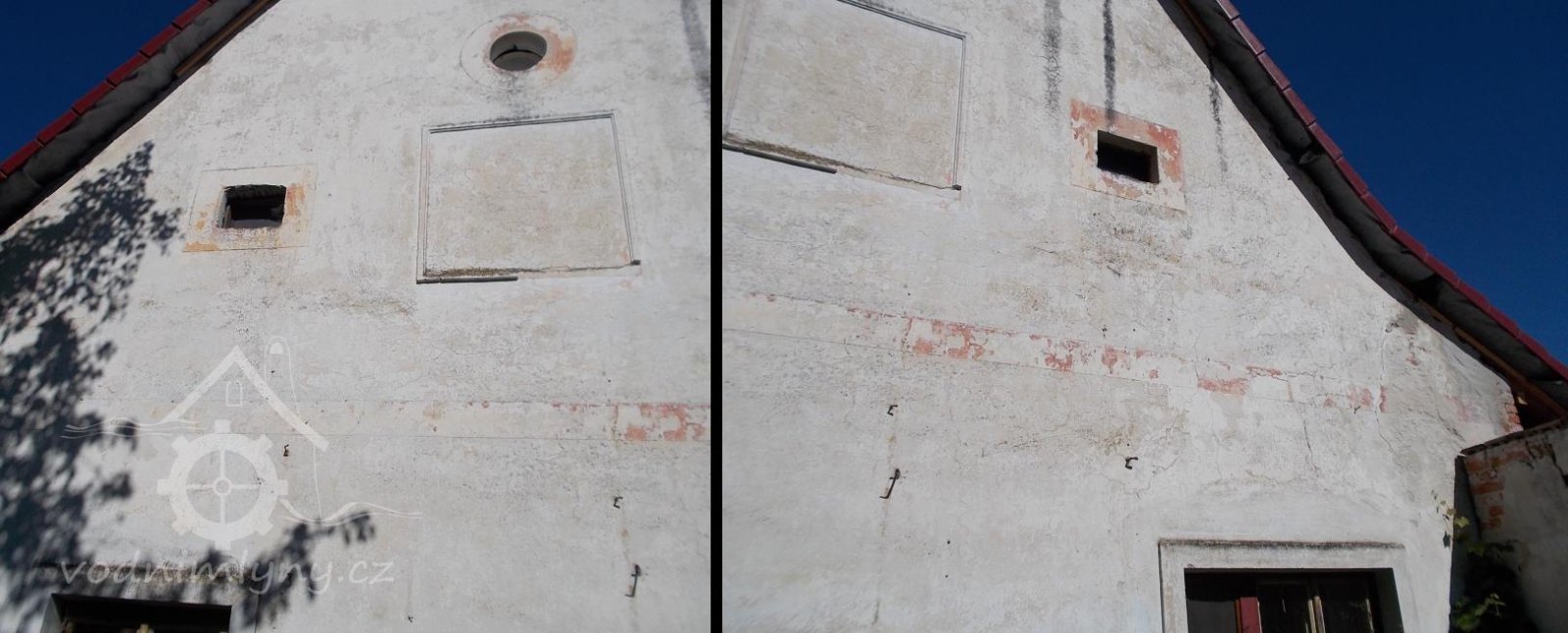 Štít mlýnice ze zřetelnými stopami přestavby, 18. 7. 2016, © Pepino