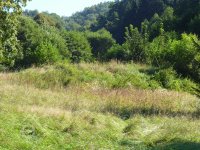 pohled od Z z polní cesty ke Lhotce, vlevo pokračuje zarostlý odtokový kanál, VIII./2016, © Kozel