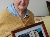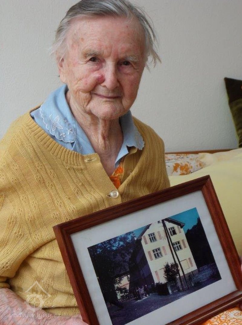 manželka správce Hyky s fotografií mlýna, nedatováno, © http://informacni-stredisko-roven6.webnode.cz/vesnice/dolanky/