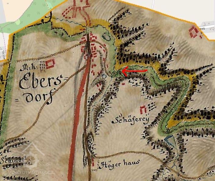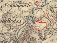 Mlýn v Habarticích, 1764-68, © I.vojenské mapování, výřez, oldmaps.geolab.cz