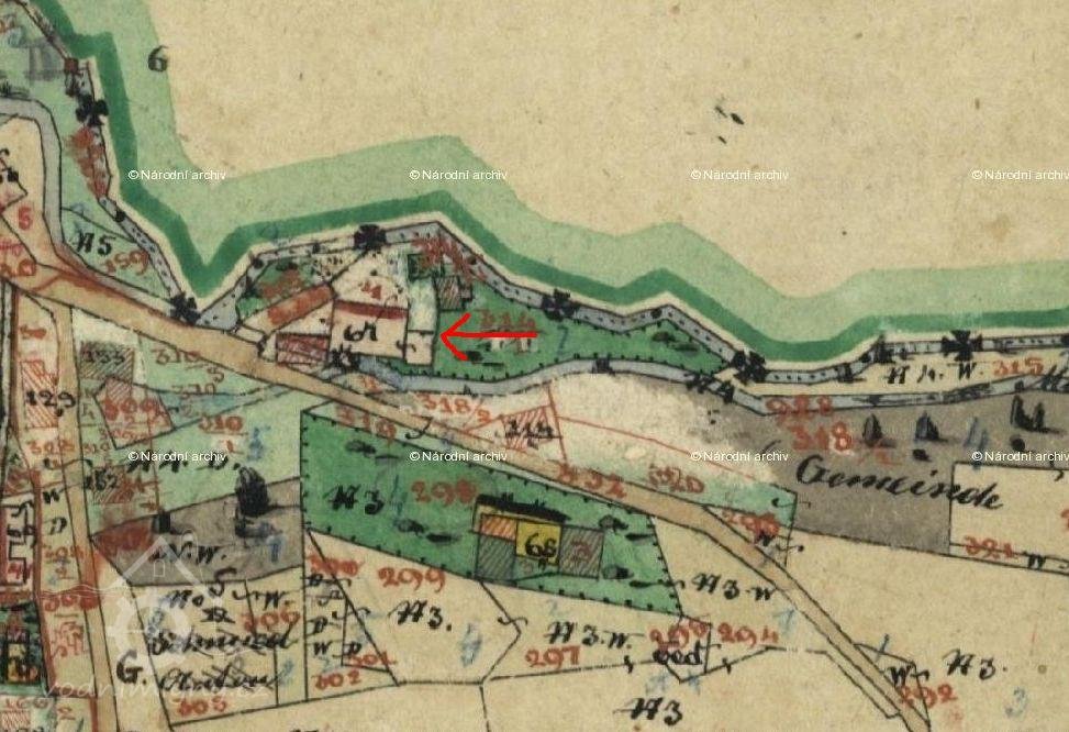 Indikační skica, výřez, 1826-1843, © http://archivnimaoy.cuzk.cz