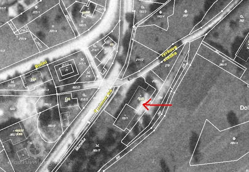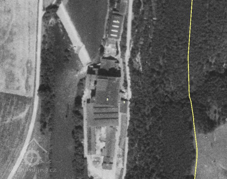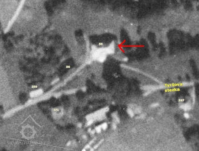Letecké snímkování a katastrální mapa- bývalý Dolní mlýn v Kokoníně, 1953, © kontaminace.cenia.cz