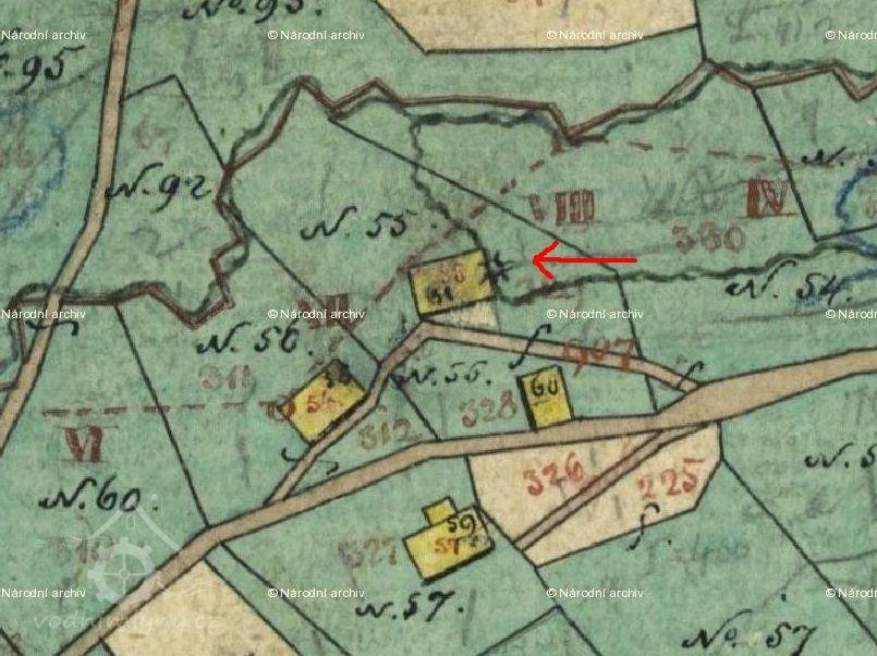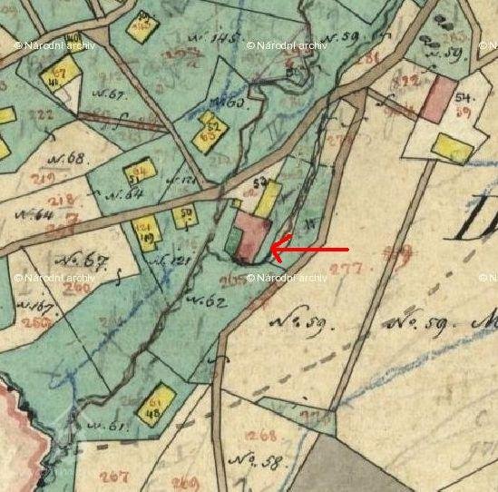 Dolní mlýn v Kokoníně čp.62 p.č.st.53, 1843, © Indikační skica, výřez,archivnimapy.cuzk.cz