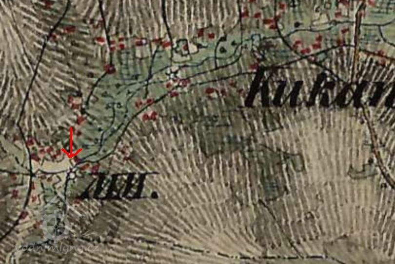 Dolní mlýn v Kokoníně, 1877-80, © III. vojenské mapování výřez,oldmaps.geolab.cz