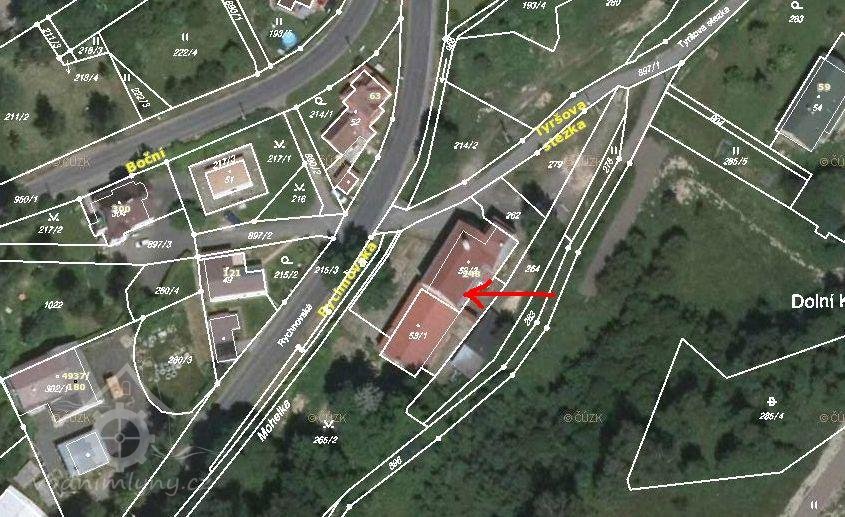 Letecké snímkování a katastr. mapa-bývalý Dolní mlýn v Kokoníně, 2010, © kontaminace.cenia.cz