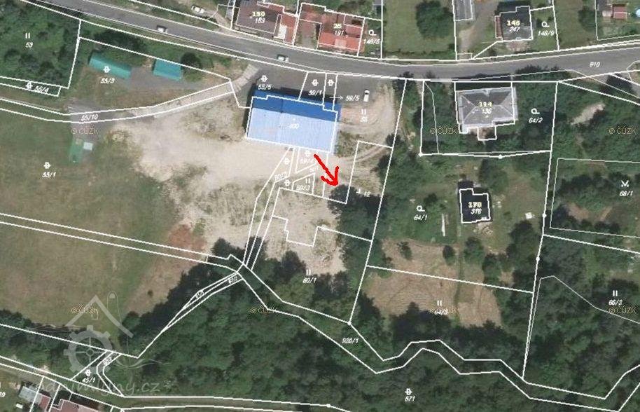 V místě stromoví za budovou HSA / s modrou střechou/ stával Dolní mlýn v Huti čp.20., 2014, © mapy.cz