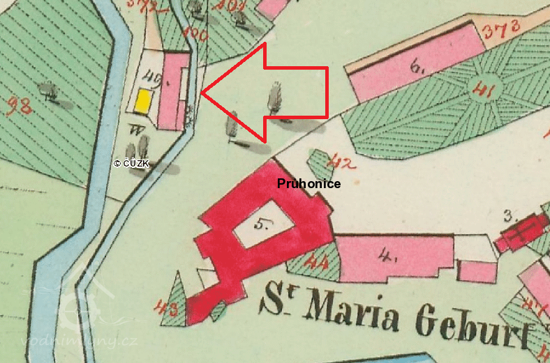 Indikační skica, výřez, 1843, © viz archivnimapy.cuzk.cz