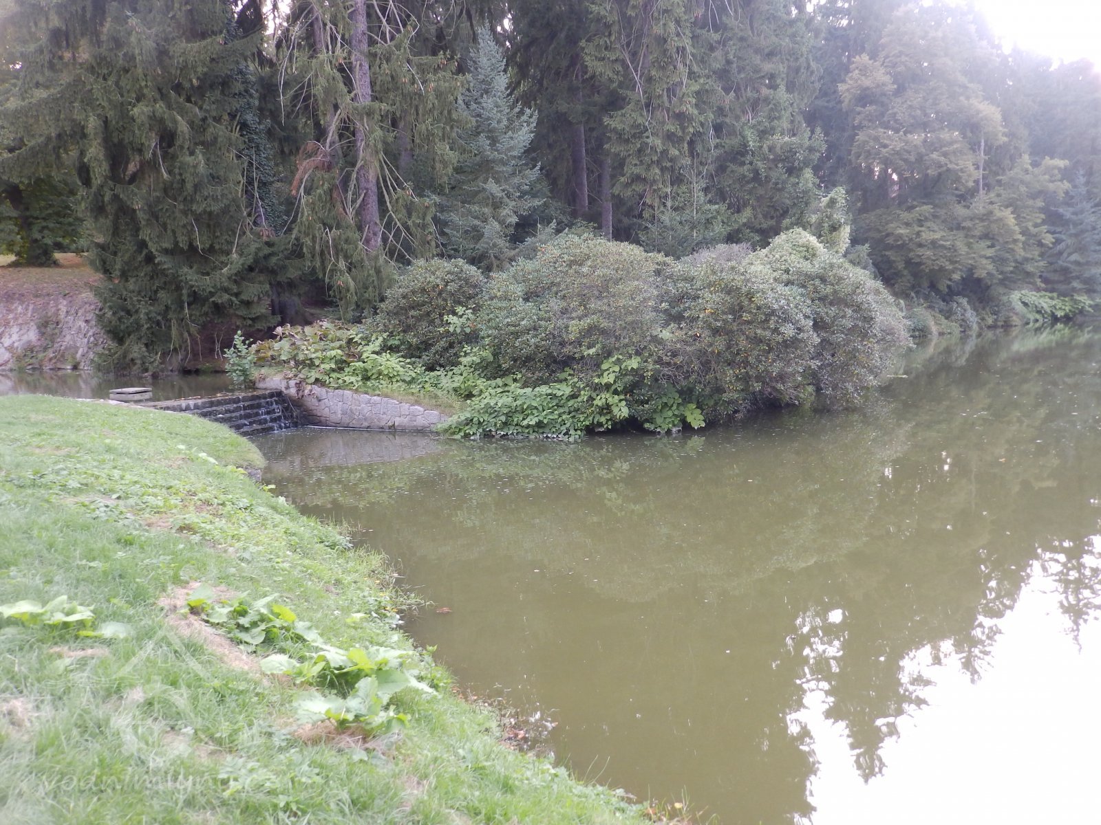 Poloostrov s rododendrony, na němž (a částečně i pod hladinou) ležel mlýn., 2016, © doxa