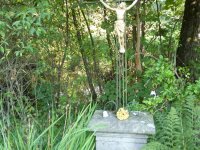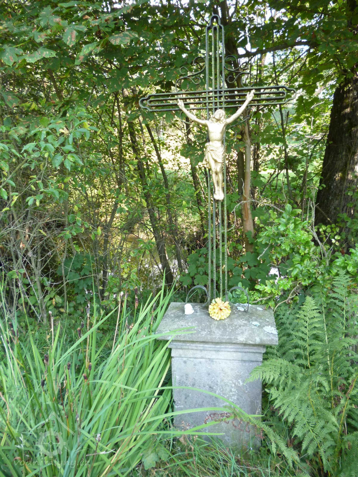 křížek vedle dřevěného můstku před mlýnem, 2016, © Martina Havelková, (Prvky na obrázku: drobné sakrální památky)