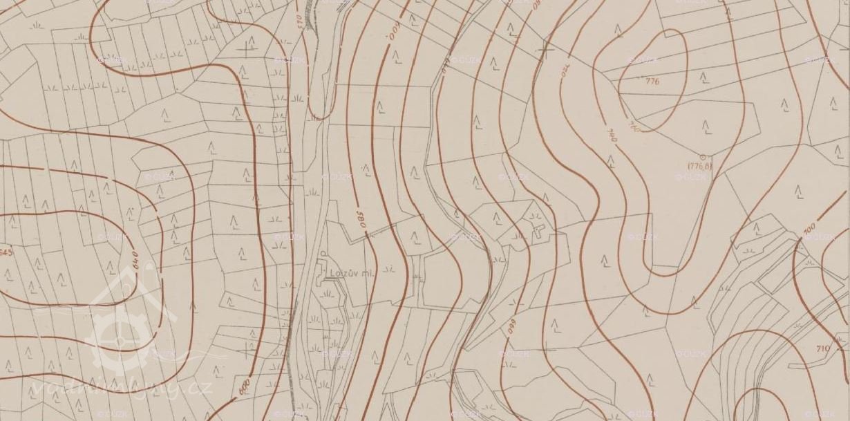 Výřez 1. vydání Státní mapy částečně odvozené, 1:5000, Český Krumlov 8-7, 1952, © Státní zeměměřický a kartografický ústav