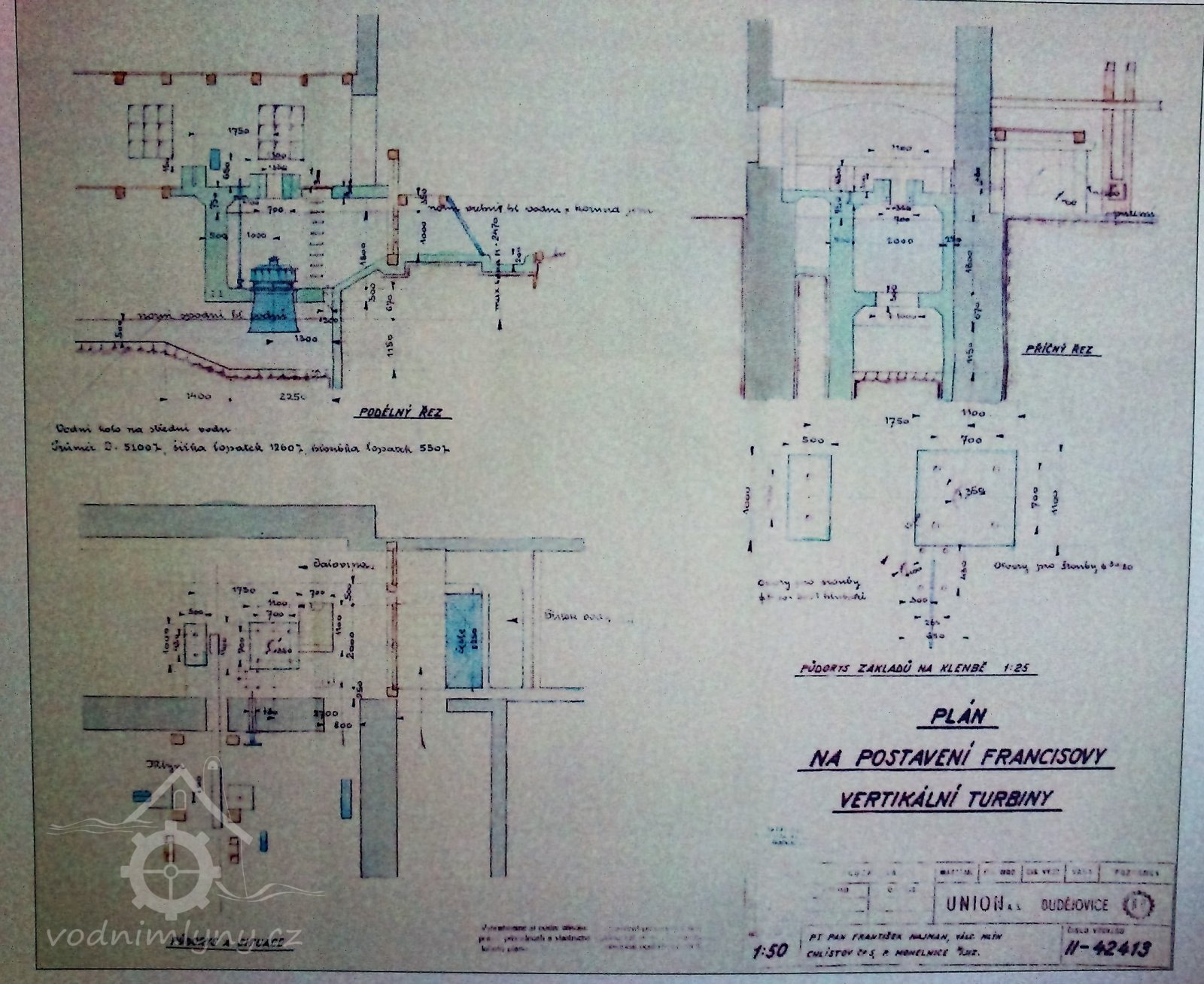 plán na stavu Francisovy turbíny, 1942, © továrna Union, a.s. České Budějovice, zdroj Zdeněk Jodas - Vodní díla v povodí Mohelky a Zábrdky