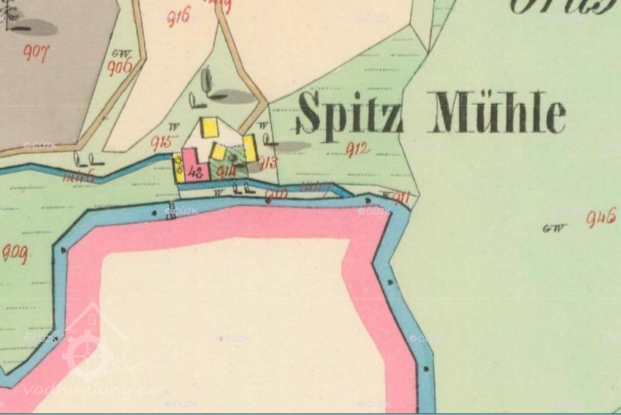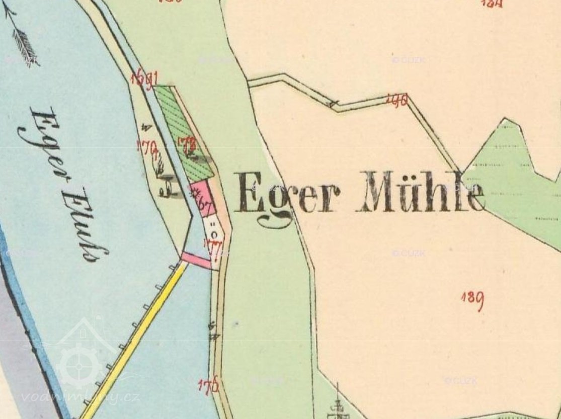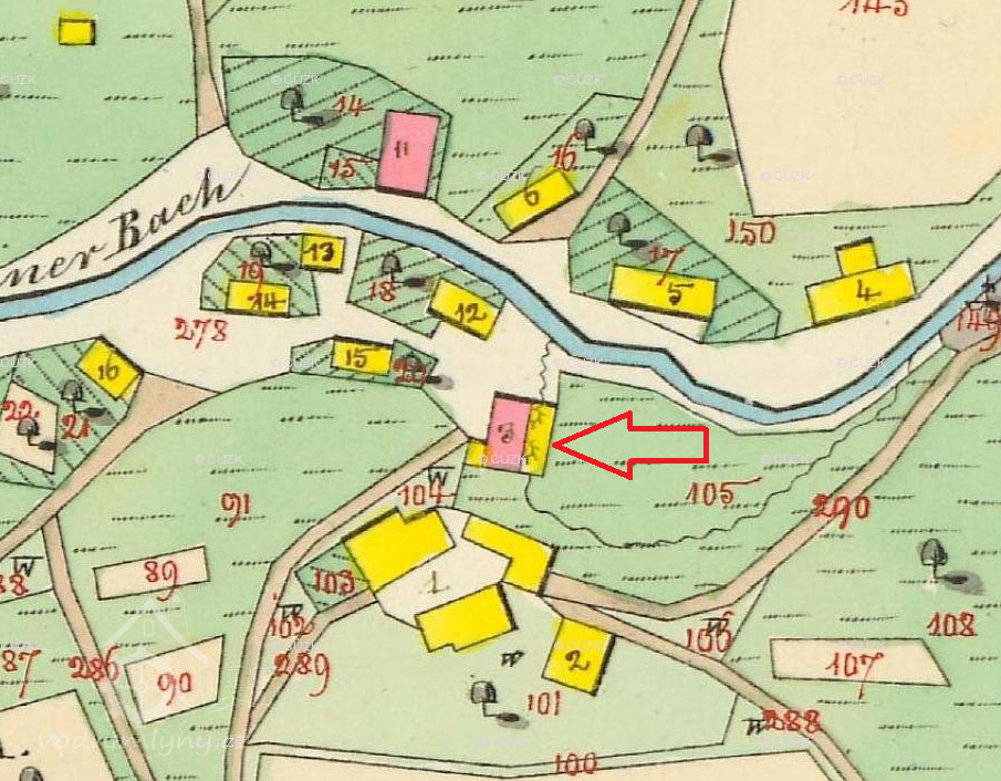 Svobodův mlýn v Chrášťanech čp.5, 1840, © Indikační skica, výřez,archivnimapy.cuzk.cz