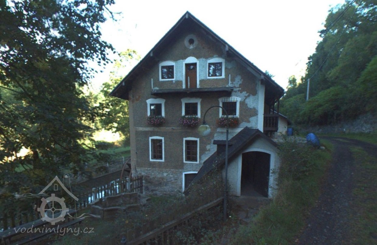 Svobodův mlýn od jihozápadu, vlevo Tloskovský potok, 2014, © mapy.cz