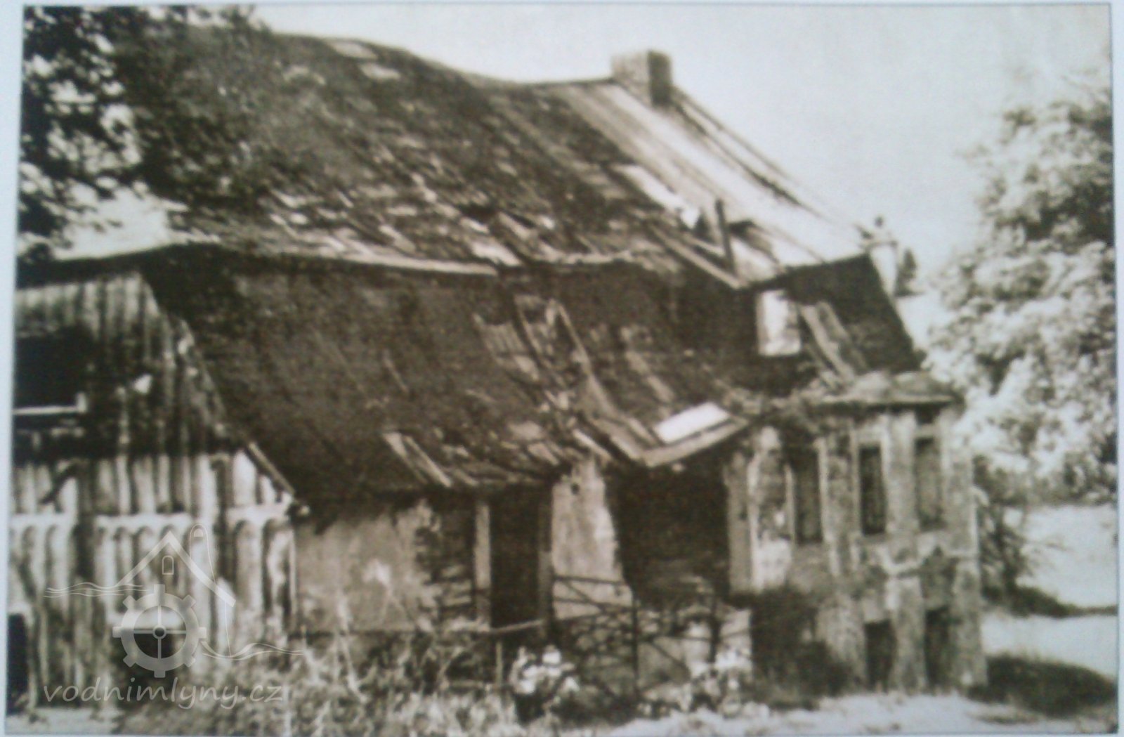 chátrající stav objektu mlýna, 80. léta 20.st., © zdroj: Zdeněk Jodas: Vodní díla v povodí Mohelky a Zábrdky