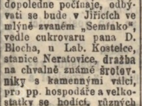 11. září 1892 se ve mlýně odbývala dražba na 35 šrotovníků. (RR)