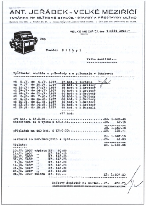 ve mlýně zařídil zámečnickou dílnu, kterou postupně modernizoval, zavedl zde výrobu mlýnských strojů