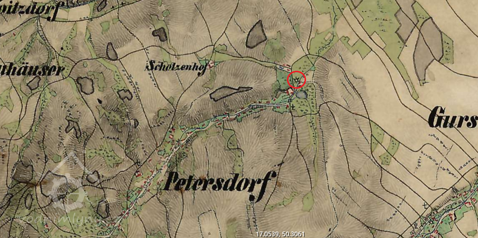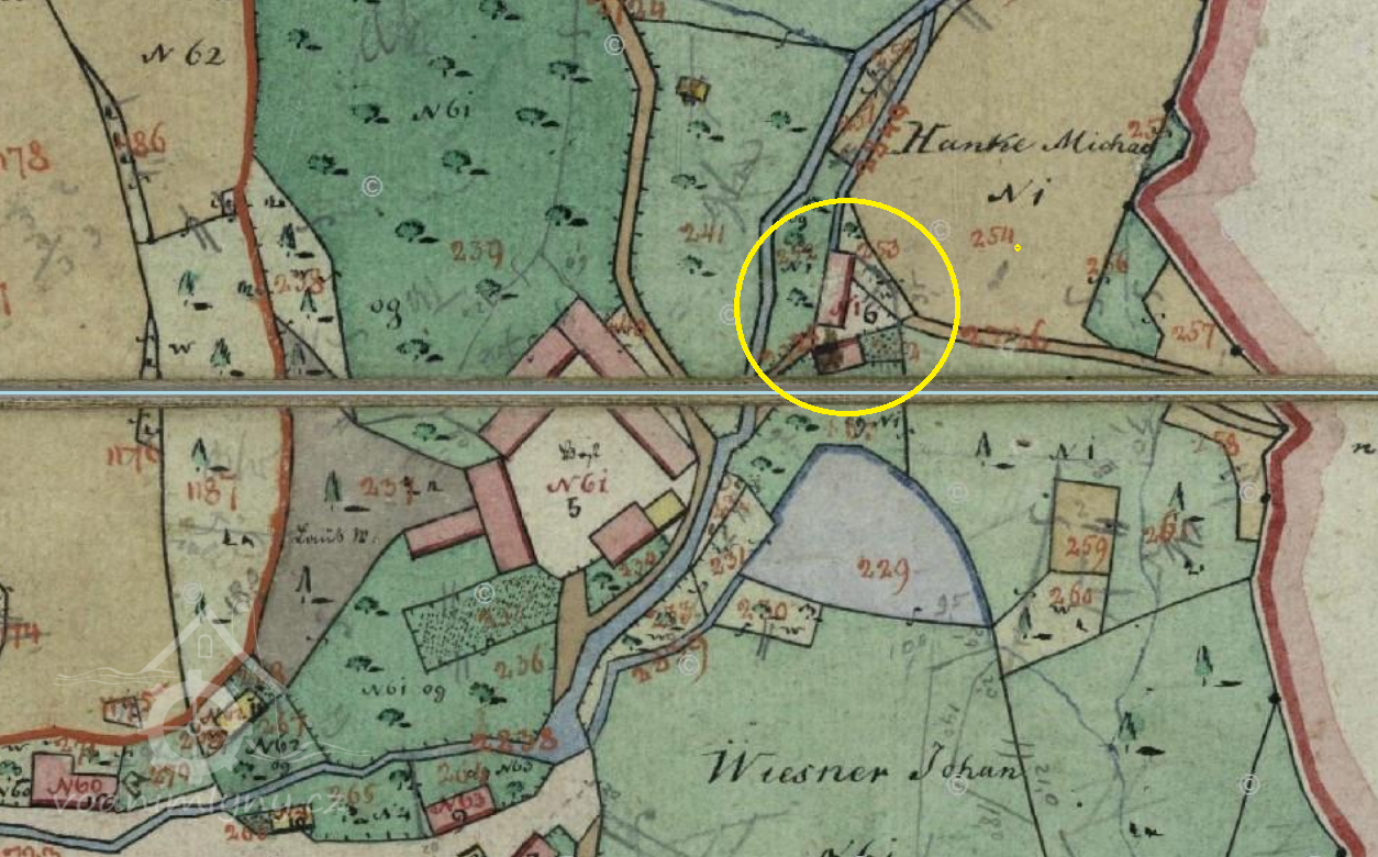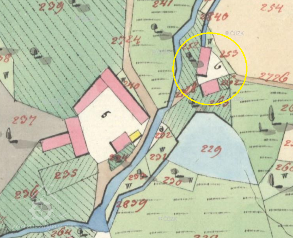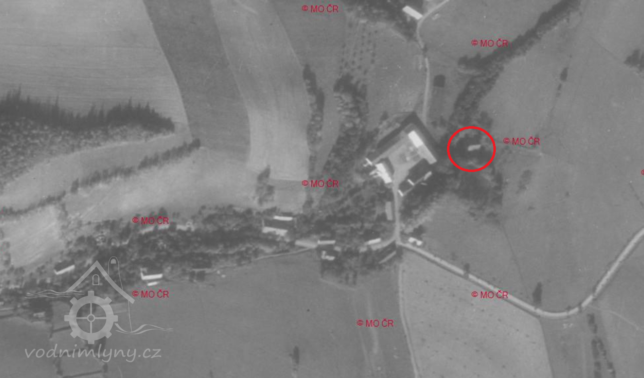Mlýn stál ještě v roce 1953, 1964 již zbořen.