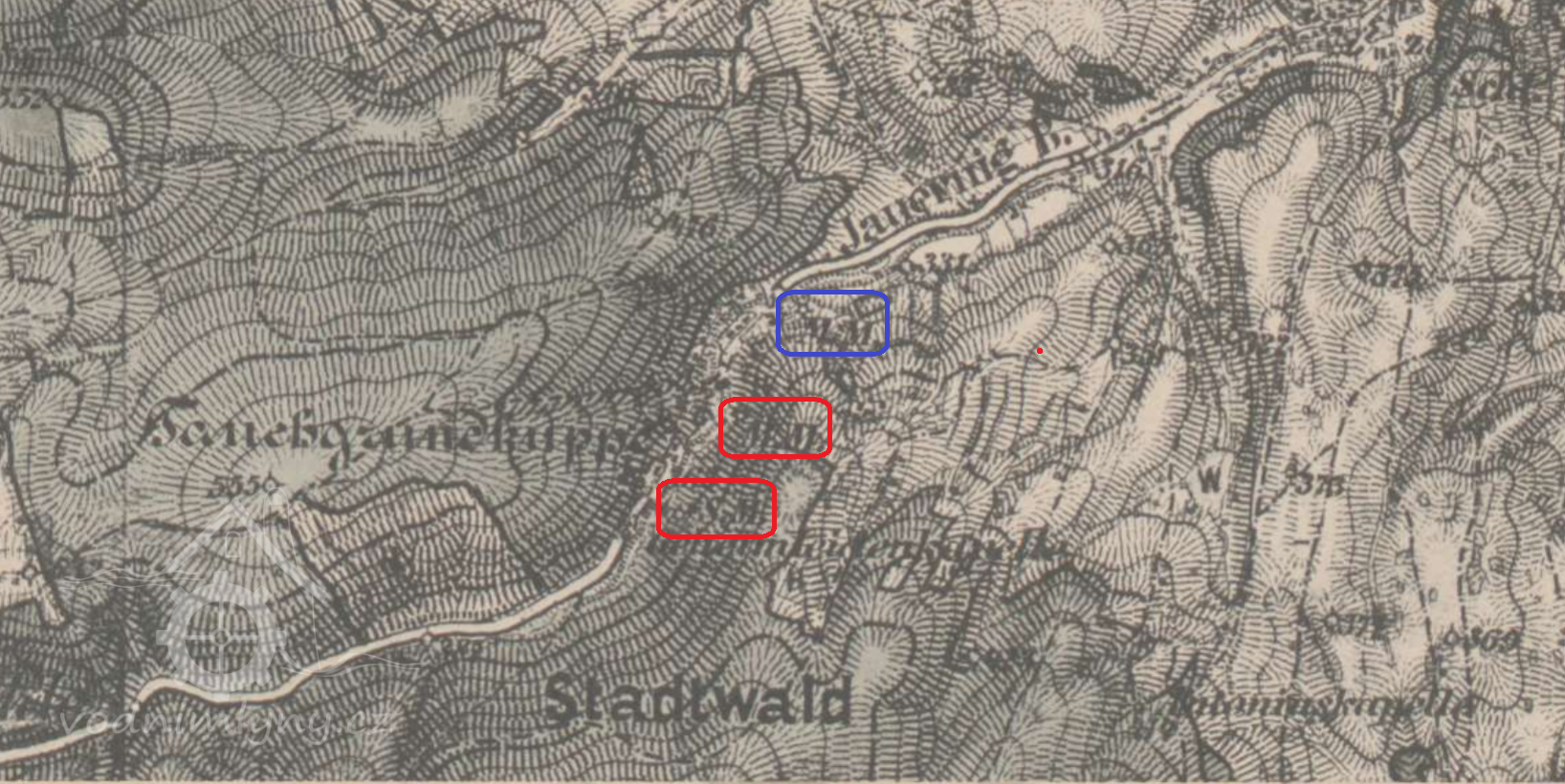 Na leteckém snímku 1946 není patrný.
