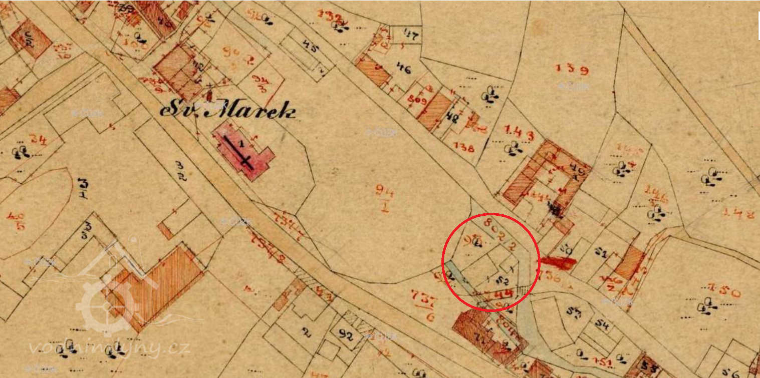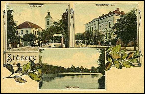 Již roku 1654 - byl ve Stěžerách pod Velkým, podkostelním rybníkem Harrachův mlýnek na jedno kolo. Voda byla přiváděna na kolo dřevěným žlabem, kterému se říkalo vantroky, kde obecní lázeň byla, koupaly se děti a ženské zde máchaly prádlo. Poblíž byla krčma. Voda od mlýnského kola tekla pod dřevěným mostkem do dvora krčmy (2025 Můj obchod), teprve potom do Struhy (Plačický potok). Další dřevěný most byl hned vedle přes Struhu, pro vodu, která vytékala ze stavidla. V obci hospodařil harrachovský statek a 5 sedláků Harrachem přesídlených z Horní Branné.