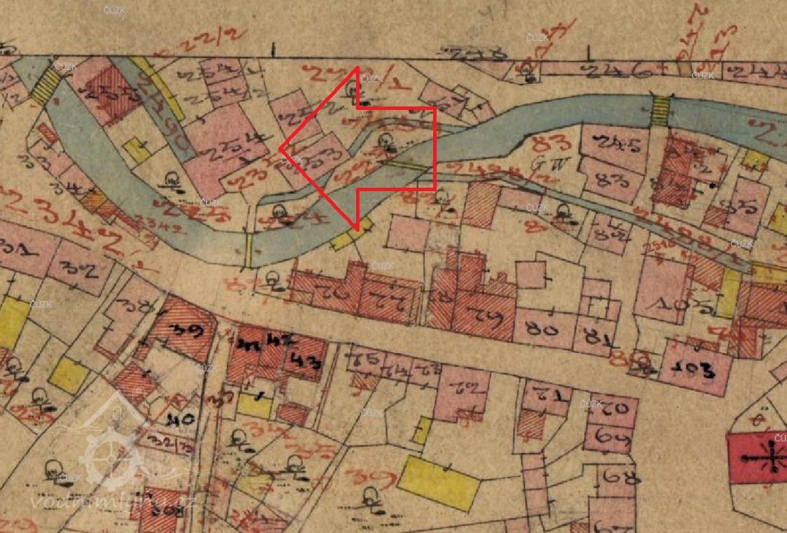 Náhon na mlýn je 100 sáhů dlouhý a začíná u výtoku z koželužny a vede vodu 120 l/s na jedno kolo na horní vodu 2.2 m vysoké o výkonu 4,3 HP, které v roce 1912 pohánělo mlecí zařízení, jedno francouzské, jedno německé složení a jedno špicovací složení na kroupy. V r 1922 probíhá modernizace, instaluje se mlýnská stolice, loupačka, výtahy a čištění obilí a na firemním razítku je ,,Kunstmúhle a Bäckerei ,,umělecký mlýn a pekárna" . 23.7 .1927 proběhla kolaudace pohonu, ale není mi známo zda tam došlo k výměně za turbínu.V roce 1930 se mění dřevěný náhon za betonový a uvažuje se o turbíně , korespondenci vede Paul Schmidt.