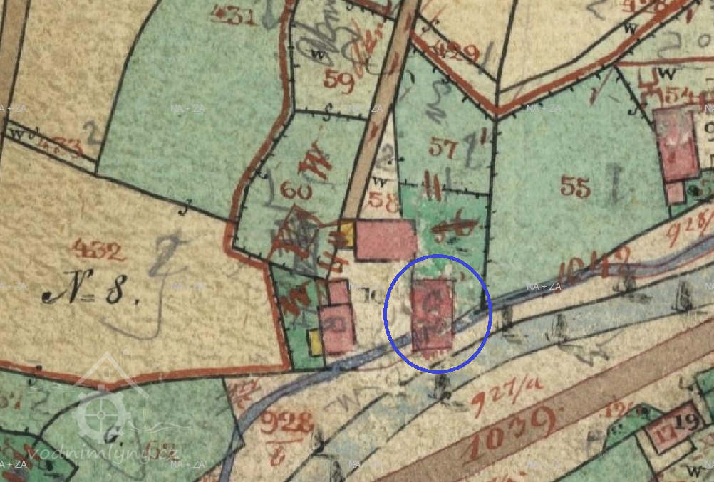 V roce 1932 mlýn a pila měl dvě kola na horní vodu, hřídele byly železné, kola schované v lednici. Kola byla vysoká 2.9 m a 3 m o přítoku 140 l a 170 l a výkonu 3,6 ks a 4,3 ks.
