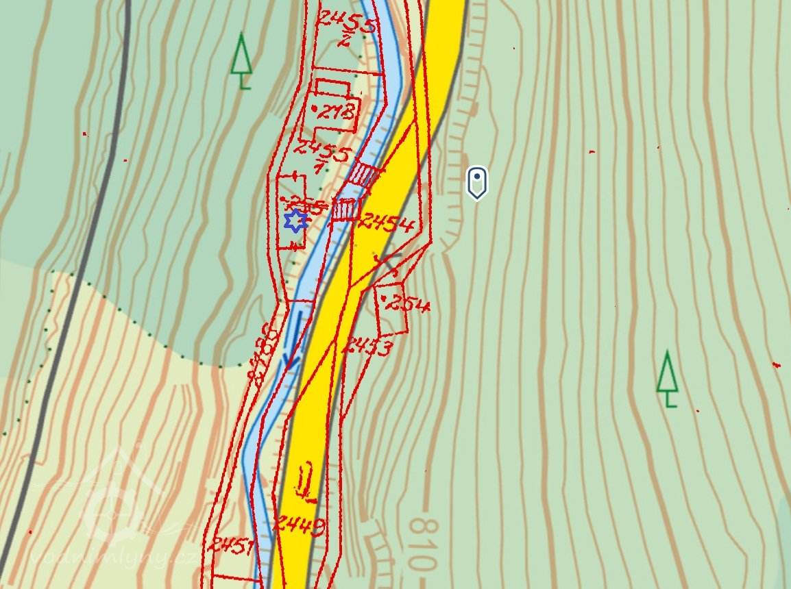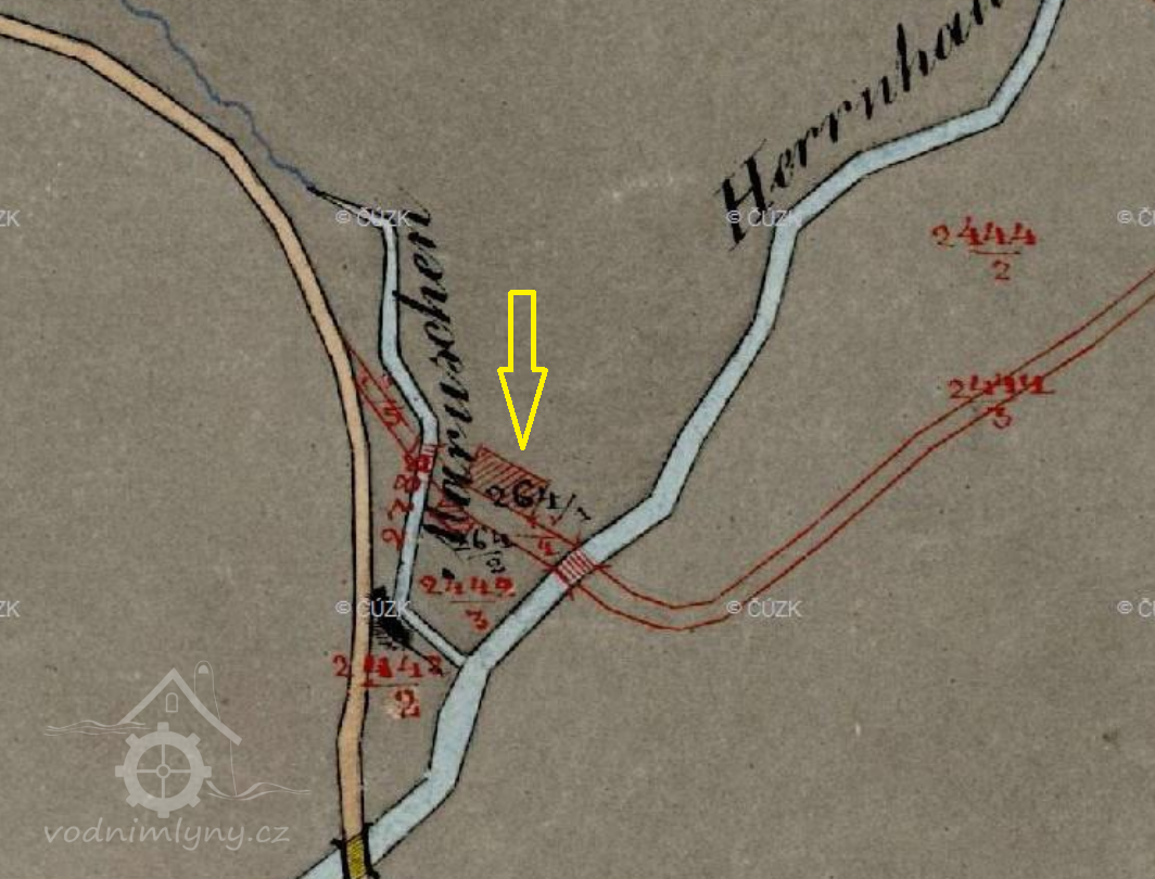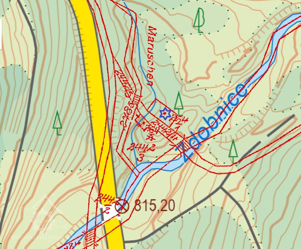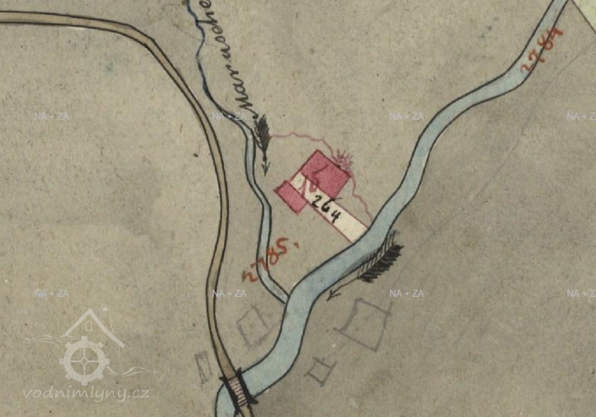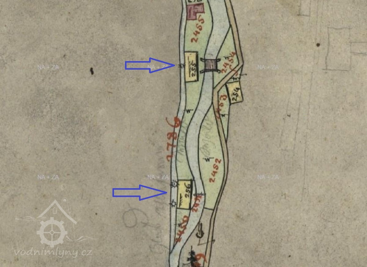 mlýn ani pily nejsou patrné ani na leteckém snímku z roku 1946