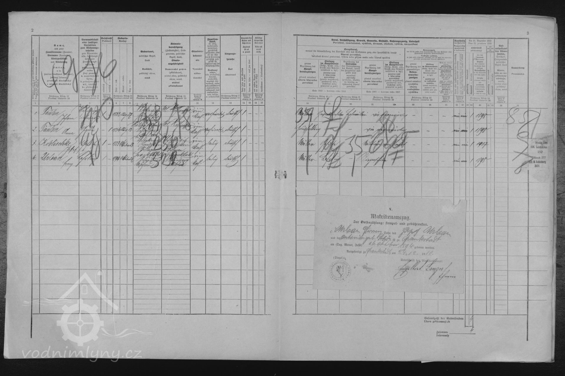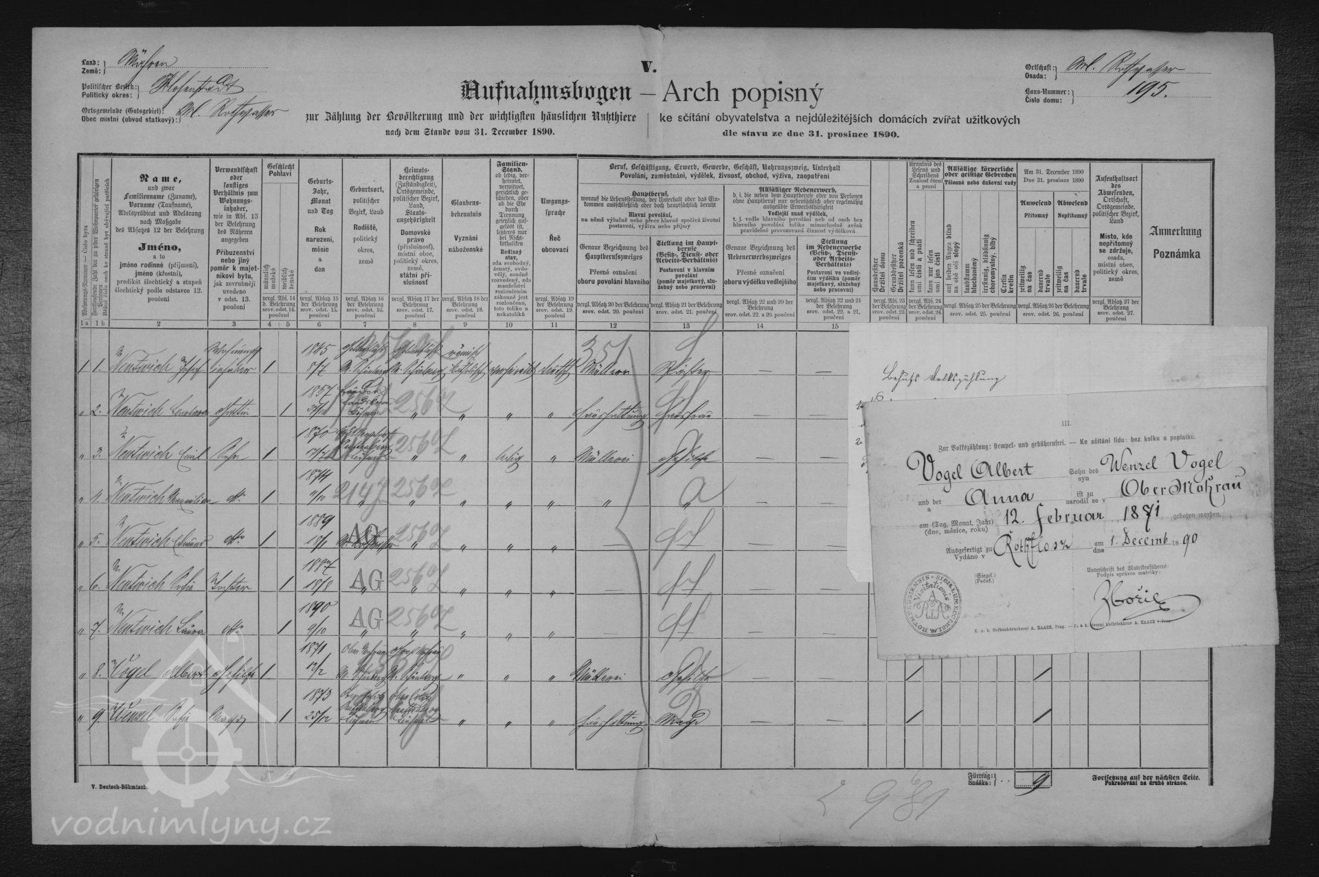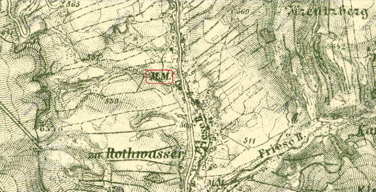 V roce 1880 a 1890 mlýn vlastní mlynář Jozef Nentvich, nar 1844, v roce 1880 ve mlýně pracuje ještě mlynář Johann Täuler, nar. 1862.
