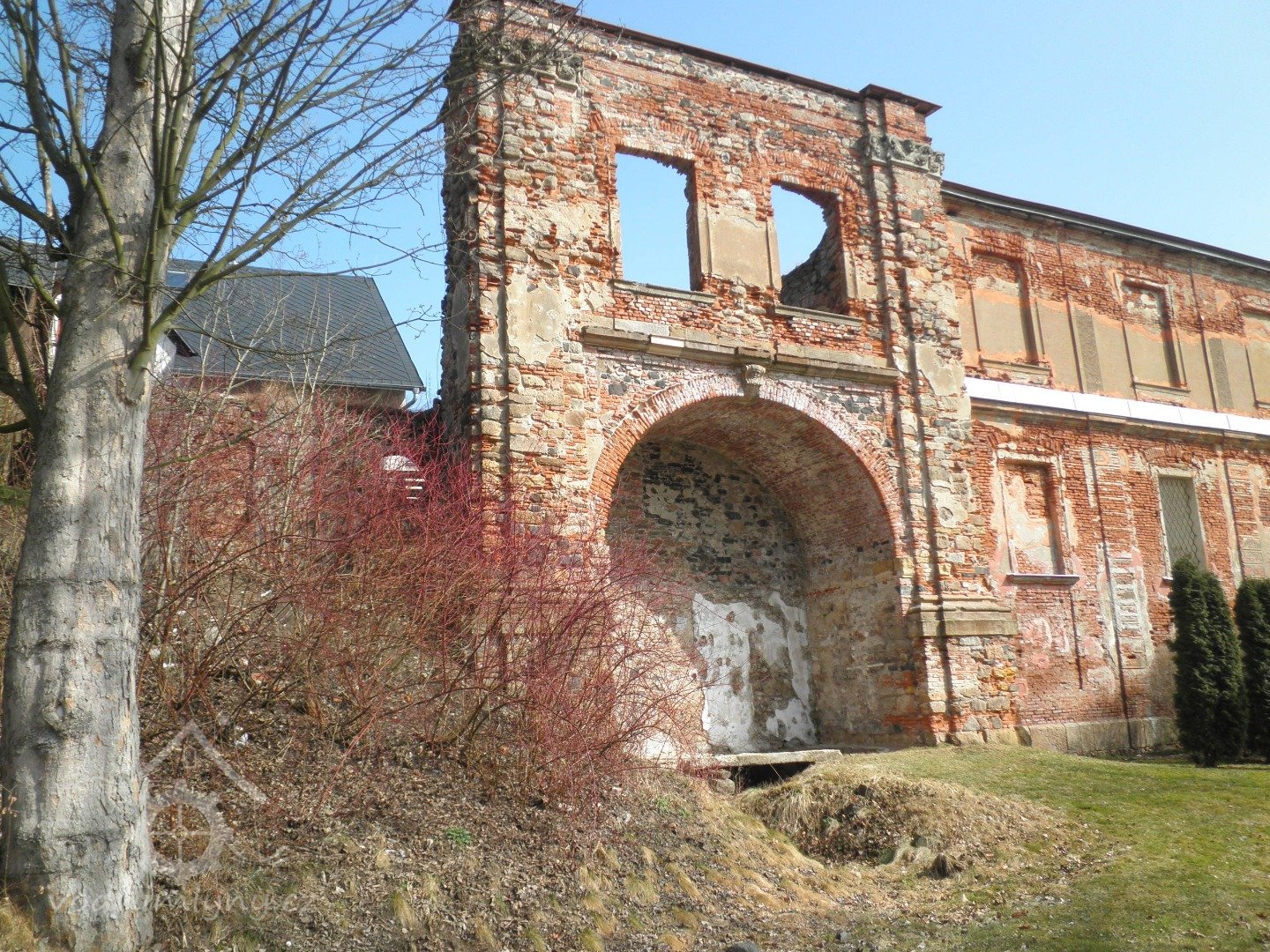 Za opravenou Věží velkého muže, na parcele č. 98 v bývalé Řeznické ulici č.p. 111(dnešní Žižkova), byla jedna z lokalit, kde se po staletí využívala vodní síla. Nikdo asi nezjistí, kdy se vybudoval náhon z Jáchymovského potoka anebo kdy se roztočilo vodní kolo moučného mlýna ,,Stadmühle". Náhon zde byl už roku 1525 odkrytý, musel se čistit a občas způsoboval malé zátopy. U horní brány byl odběr vody a dřevěnými trubkami se zásobovala horní a dolní kašna na náměstí. Až do roku 1838 byly kašny dřevěné, pak kamenné. V polovině 16 století bylo v Ostrově 5 mlýnů (o pátém přesně nevíme, kde stával), kde mlynáři provozovali své živnosti. Další zmínka je z roku 1632, kdy mlýn koupilo ostrovské panství za 2300 zlatých od Christopha Wernera. V roce 1794 ale byl zase prodán měšťanům a to za 835 zlatých a 42 krejcarů s tím, že panstvu bude nadále platit činži ve výši 200 zlatých. Při velkém požáru roku 1607 byl zmíněn mlýn ve městě o 4 složeních (jedno složení představují dva mlýnské kameny), ke kterému vedl náhon, sloužící také k máchání prádla a máčení kůží. V roce 1665 byly ve městě ještě 4 mlýny (Neumühle, Stadtmühle, Steinbrückemühle, Weissemühle) a roku 1731 už jen tři. Weissemühle byl zrušen a podle J. Kühnla se zde v 17. století řezal kámen pro početné sochy (neboť v roce 1685 začala stavba nového zámku). Poté zde máme zaznamenány majitele z katastrálních knih, kdy v roce 1860 koupil polovinu nemovitosti Johan Nauthe, kterou pak předal svým třem dětem. V roce 1887 se vlastníkem jedné poloviny stávají pánové Johann Dotzauer a Leo Wolf a druhé poloviny Judr. Heinrich Zloch a Karl Vogl. Poté se majetky převádí v rámci rodin a v roce 1910 se stávají majiteli Friedrich Dotzauer a ing. Robert Wolf. V roce 1930 jsou majiteli nemovitosti, včetně stavidla na Jáchymovském potoce Gustav a Bohumir Bukert.
