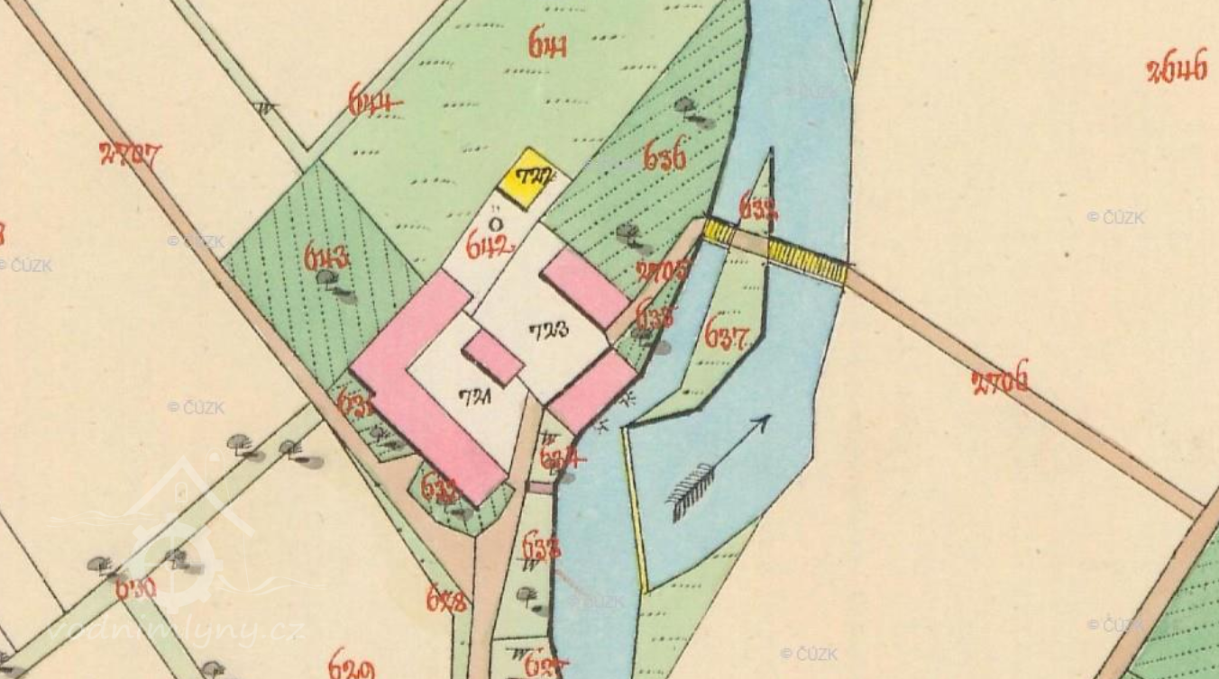 1761 troje složení se stupníkem, ke mlýnu patří splav na Chrudimce, vlastnictví dvora čp. 147/IV. od mlýna odděleno