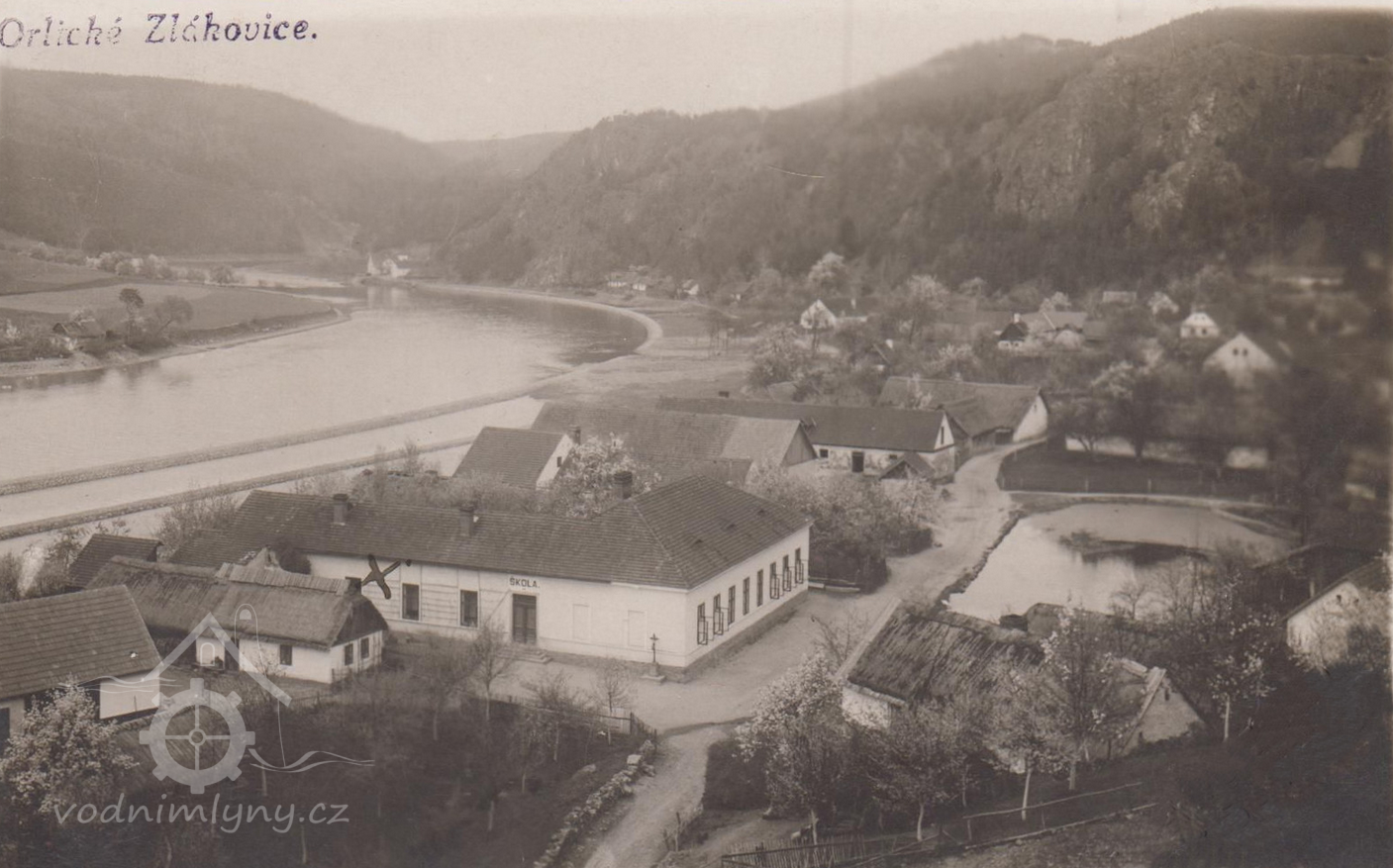 Na pravém břehu, na konci Orlických Zlákovic stál válcový mlýn nazývaný Bláhov či Na Bláhově. Mlýn byl v těchto místech nejméně od 16. století – jeho poslední podoba s vodním kolem ve štítové stěně mlýnice pocházela z roku 1891. Právě v té době stal se tady panem otcem Polák Stanislav Kosciuk, který mlýn zvelebil a zavedl zde elektrický proud.