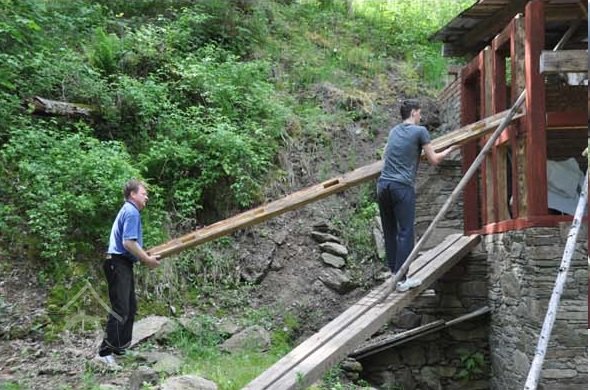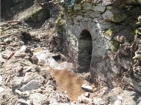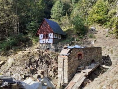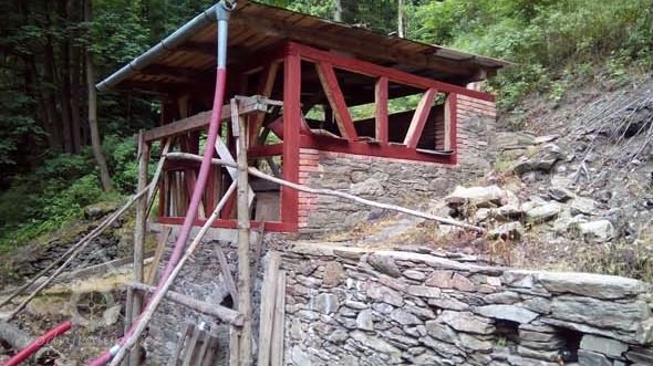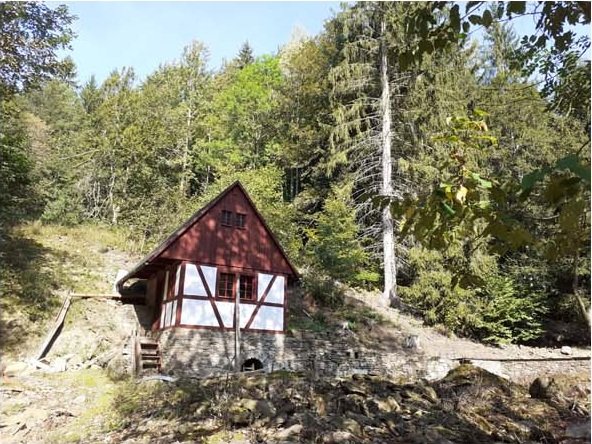 Již léta na místě, které vlastním, znovuobjevuji a zachraňuji bývalý hamr (drahtwerk), který zkujňoval železo na nářadí do dolů, o čemž svědčí nálezy strusky i polotovary. Nejprve tu bývala lehčí hrázděná stavba s dvěma menšími koly, jedno na kladivo a druhé menší pohánělo měch anebo brus. Po skončení hornické činnosti a koncentraci výroby železa se zde postavil kamenný mlýn s jedním kolem na mletí mouky, což je doloženo jak písemně, tak i nálezem mlýnského kamene o průměru 86 cm. Poslední vodní kolo mělo v průměru 5 m a s 180 l průtoku dávalo výkon 7,5 k.s. Vodní kniha 1875 uvádí „moučný mlýn s jedním složením se špičákem a s dvěma vodními koly, vodní právo od nepaměti“. Když došlo k výstavbě uměleckých strojních mlýnů, postavila se zde pila, zbyl po ní betonový blok. Stavební řezivo sloužilo k výstavbě lázní na zač. 20 stol, v té době se všechna funkční vodní díla v údolí přebudovala na pily.