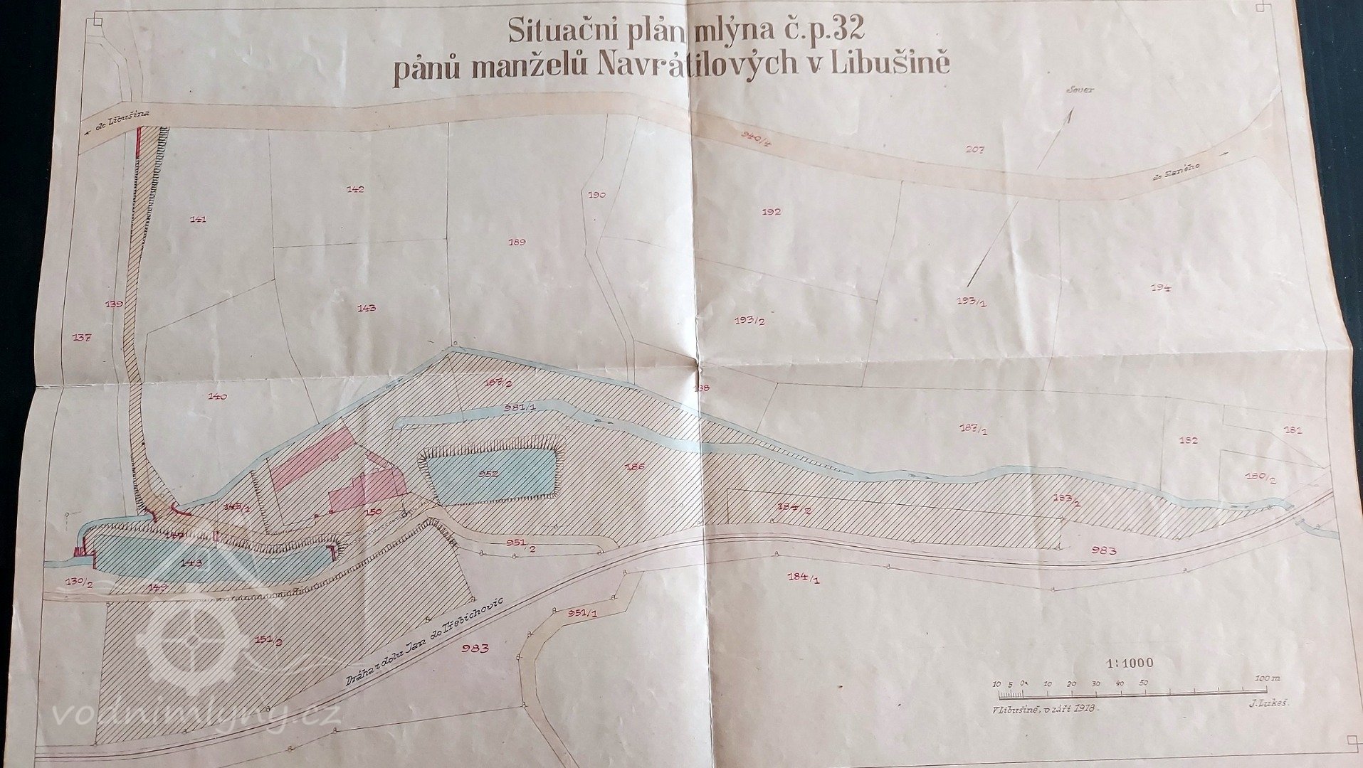 V roce 1930 byl majitelem mlýna Jindřich Navrátil. Potok je nazýván Libušínský.