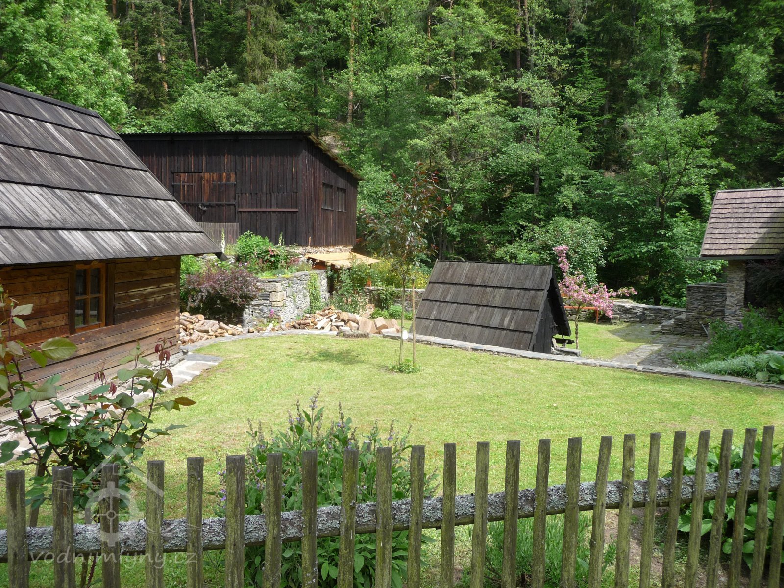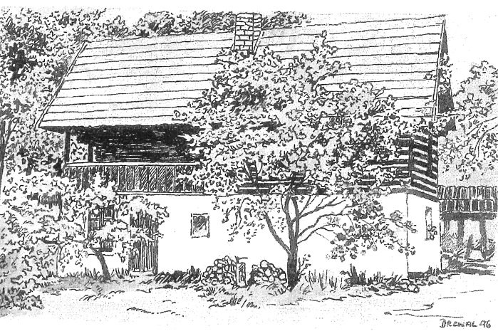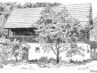 1978 soukromý skanzen Josefa Vorla, přeneseno sem roubené patro sýpky z Kaceřova