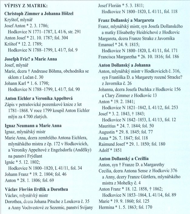 Počátkem 19. století je zde jako mlynářský mistr jmenován Ignaz Neumann, který se oženil s dcerou Antona Eichlera Marií Annou. O několik let později je vystřídal Václav Florián Brdlík a manželkou Doroteou.