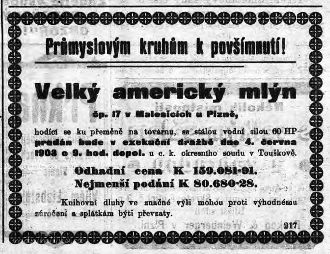1884 - František Lisec - válcový mlýn , 12.9. 1884 zaps. jednatel firmy. (K.M.)