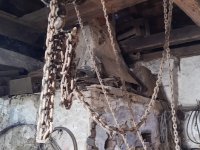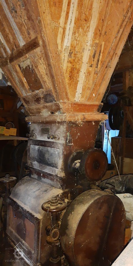 V mlýně bývalo kompletní vybavení válcového mlýna - viz zbytky převodů a několik mlecích stolic.