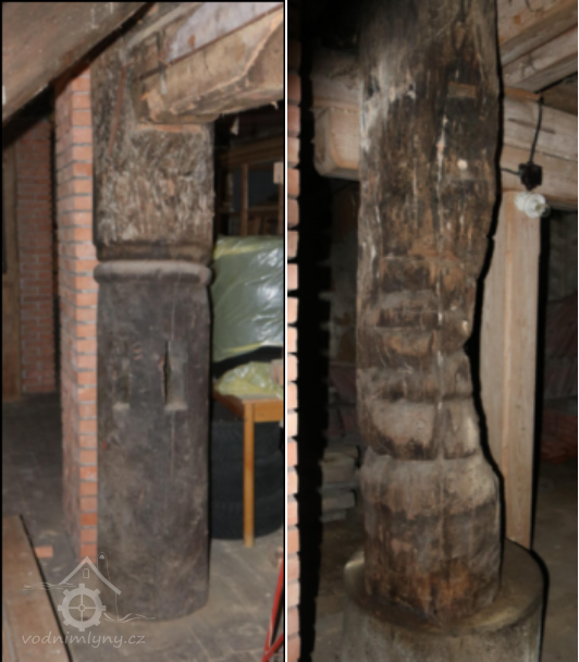 Dle bývalých majitelů mlýna z rodiny mlynáře Josefa Šťastného: v interéru mlýna je nosný dřevěný sloup. Památkáři dle stavu dřeva usoudili vznik konstrukce do poloviny 14. století. (R. Šebek)