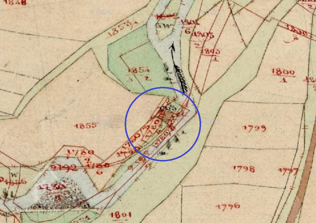 Indikační skica, výřez, 1837, © ags.cuzk.cz/archiv