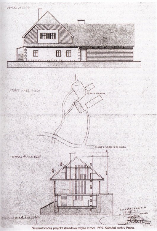 Neuskutečněný návrh na přestavbu mlýna, 1939, © Národní archiv Praha