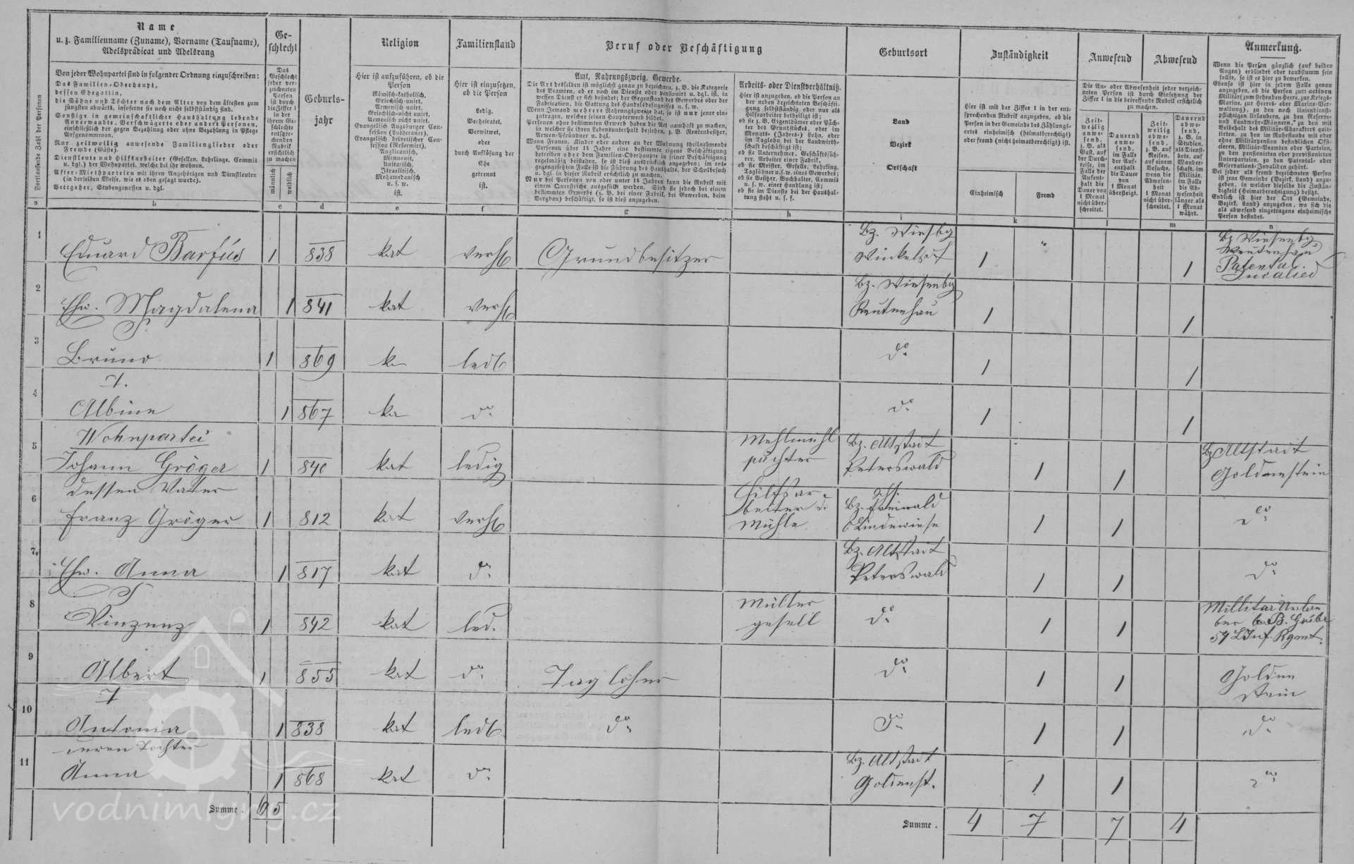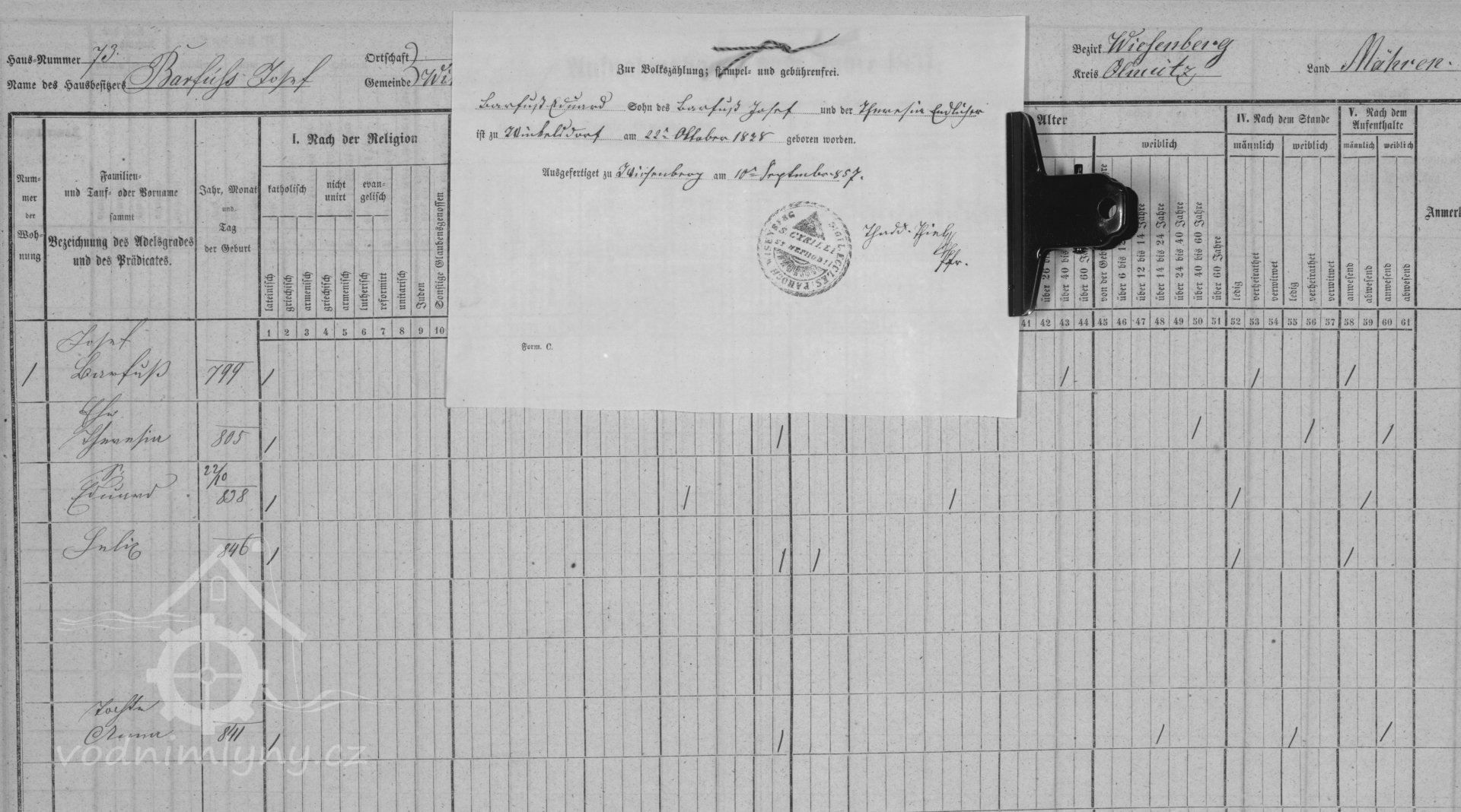 sčítací arch, 1857, © Digitální archiv Zemského archivu v Opavě