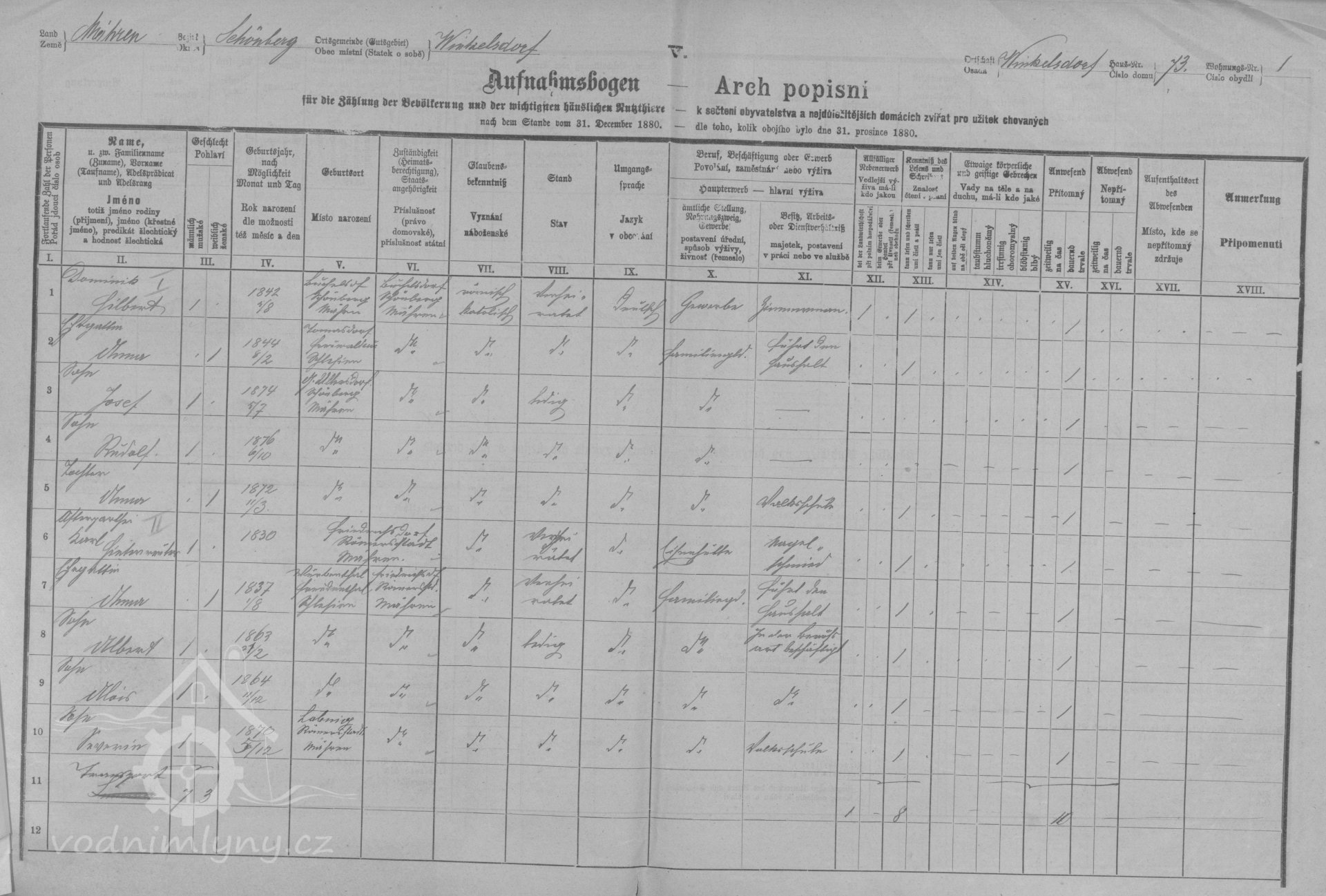 sčítací arch, 1880, © Digitální archiv Zemského archivu v Opavě