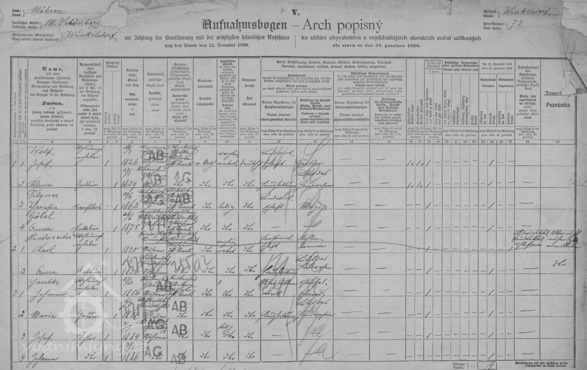 sčítací arch, 1890, © Digitální archiv Zemského archivu v Opavě